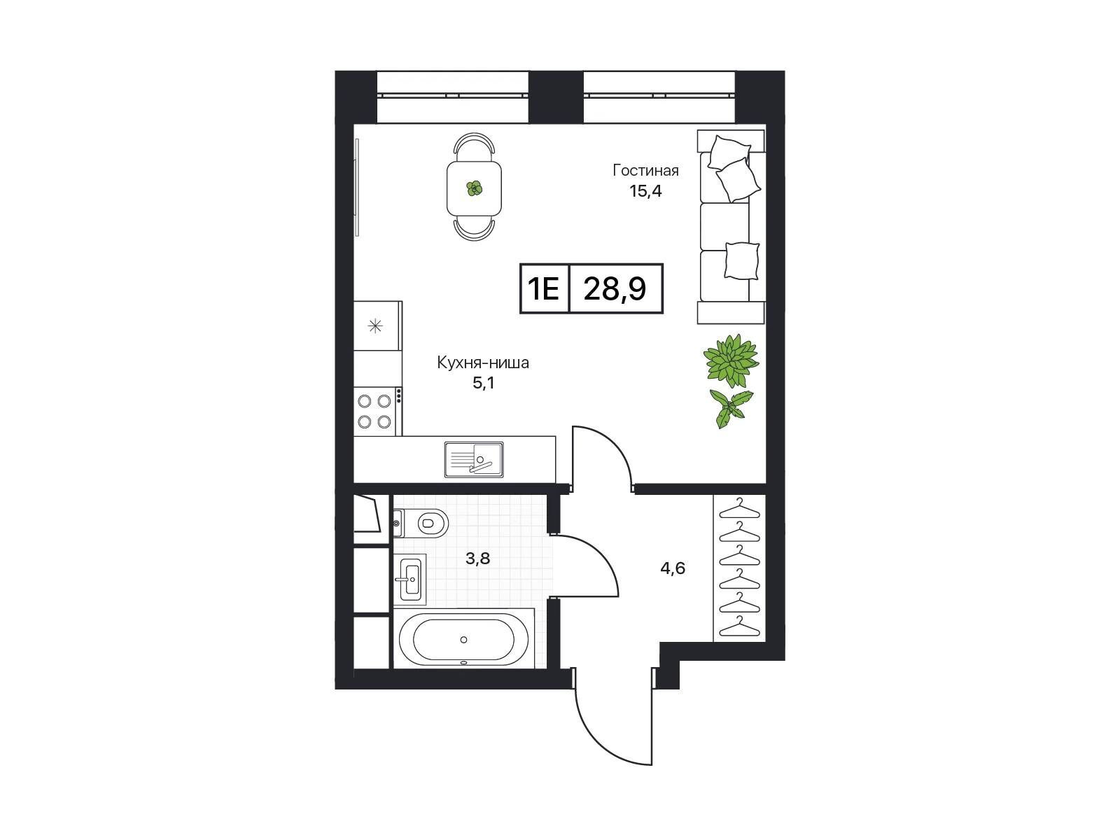 Студия, 30.50 м²