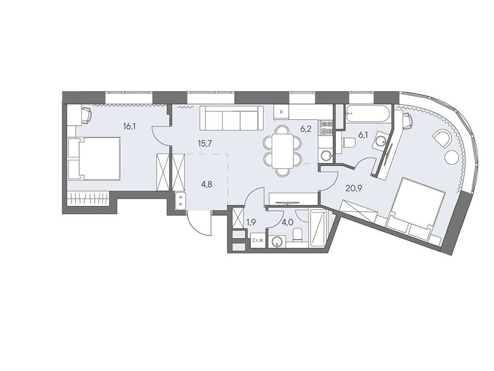 3-комнатная квартира, 64.60 м², 20 из 30 эт.
