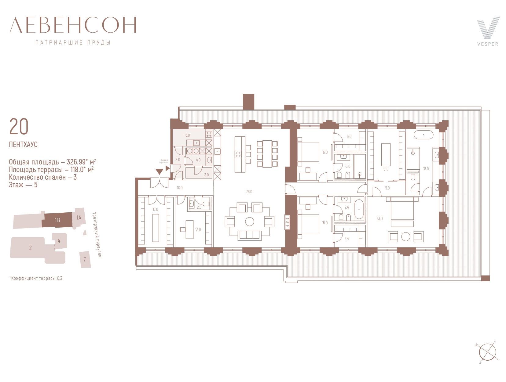 3-комнатная квартира, 327.40 м², 4 из 6 эт.