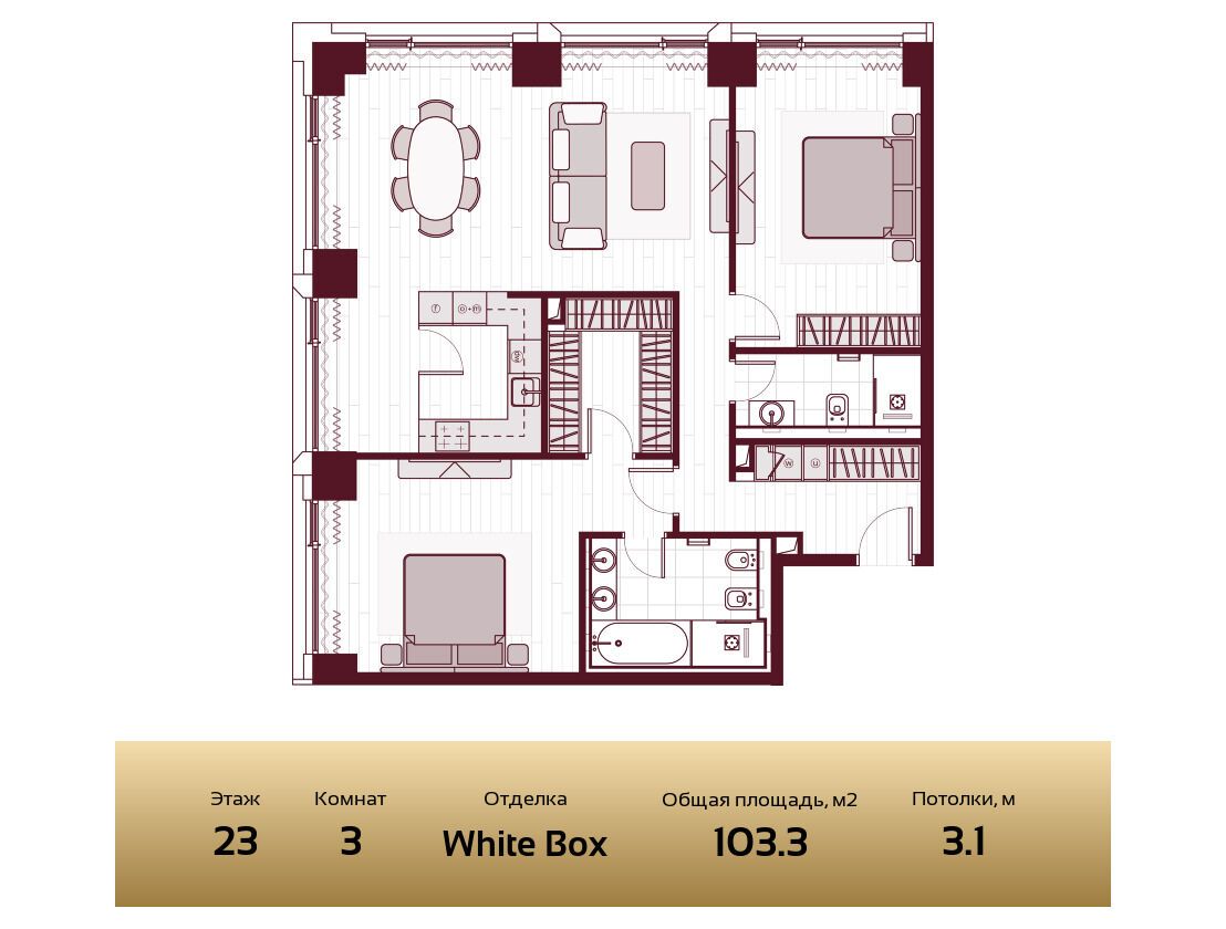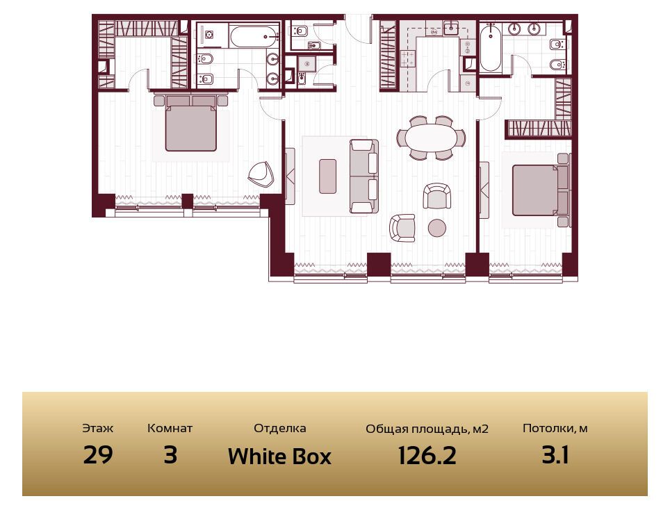 3-комнатная квартира, 95.50 м², 3 из 33 эт.