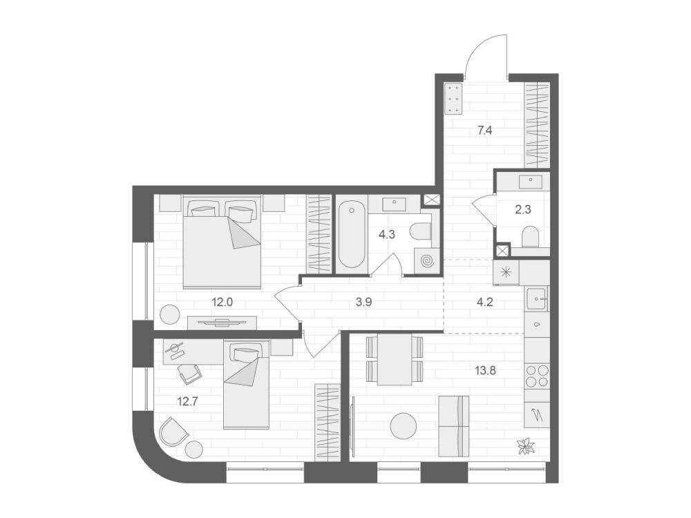 2-комнатная квартира, 50.40 м², 2 из 12 эт.