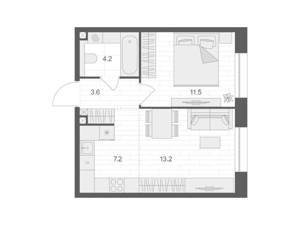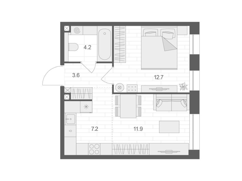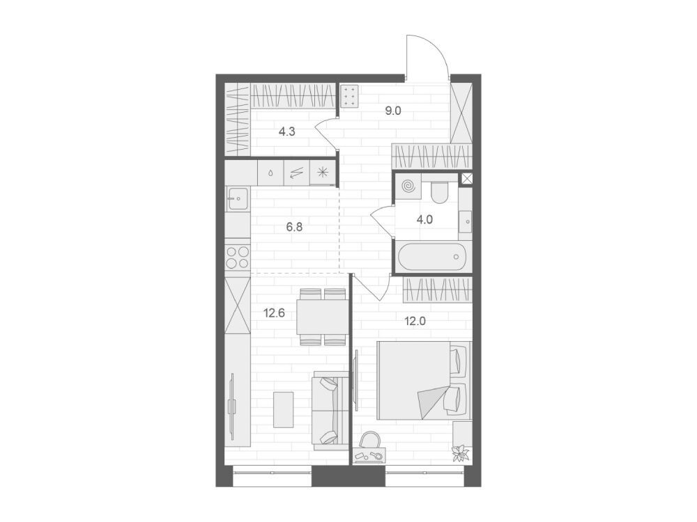 1-комнатная квартира, 48.60 м², 2 из 12 эт.