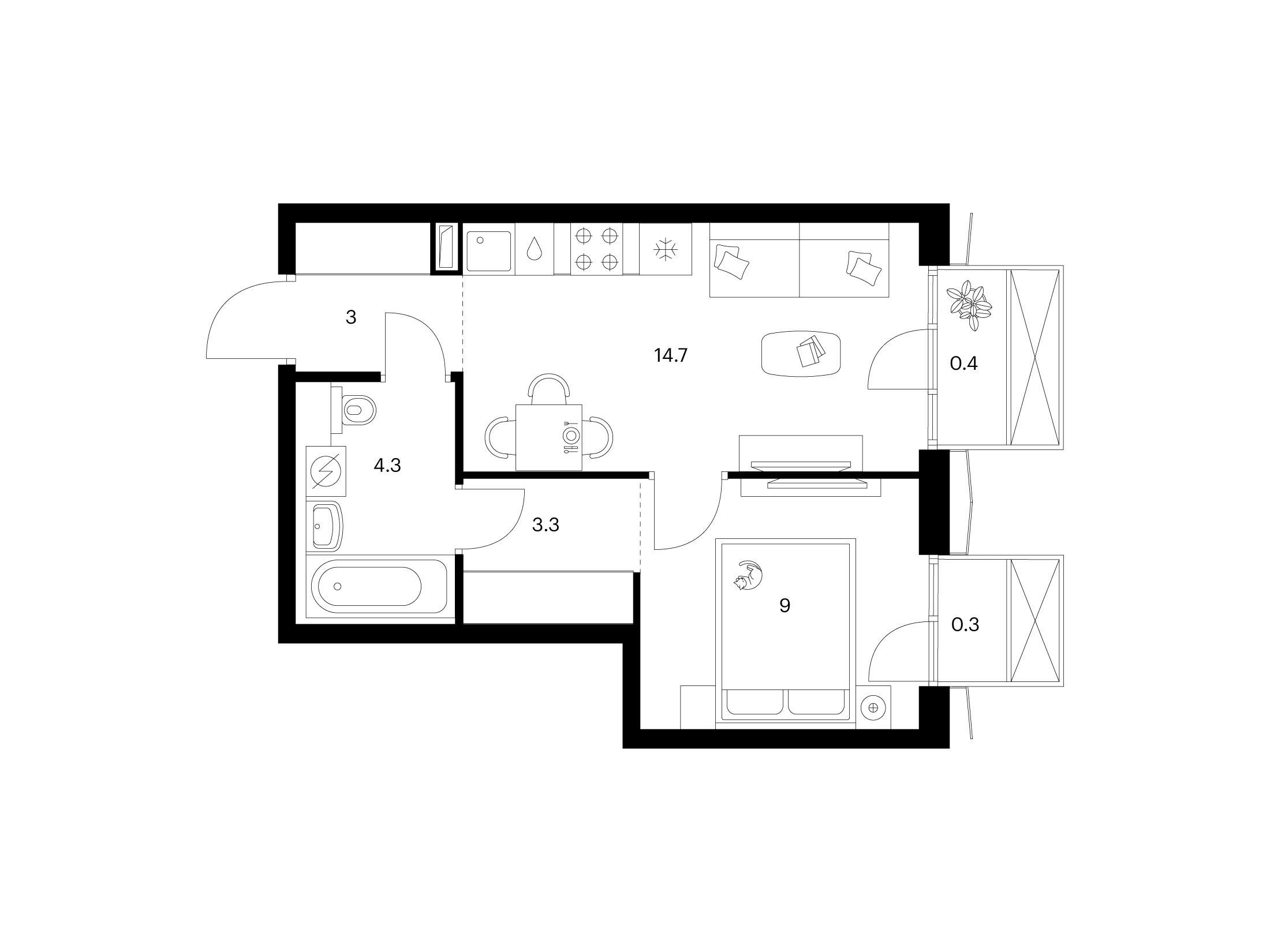 1-комнатная, 37.40 м²