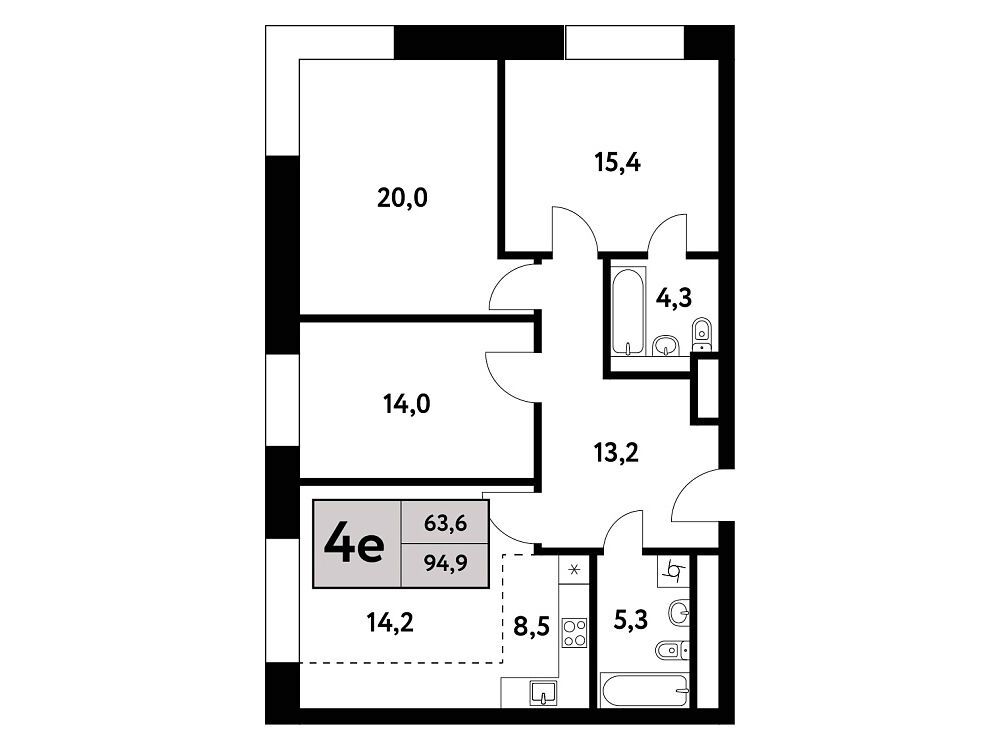 4-комнатная, 94.90 м²