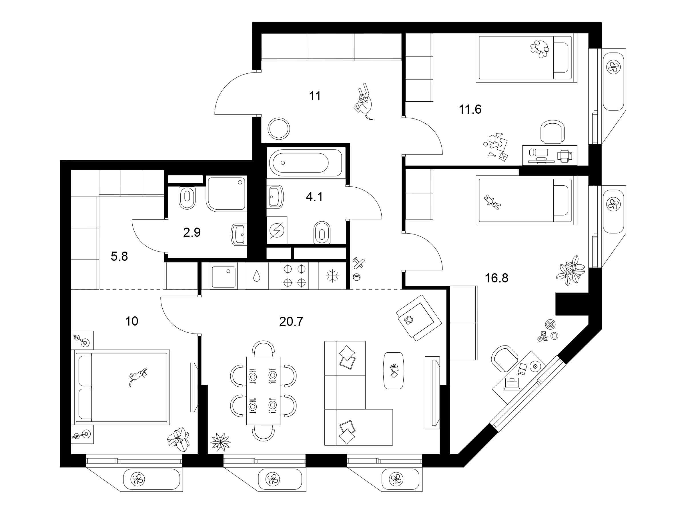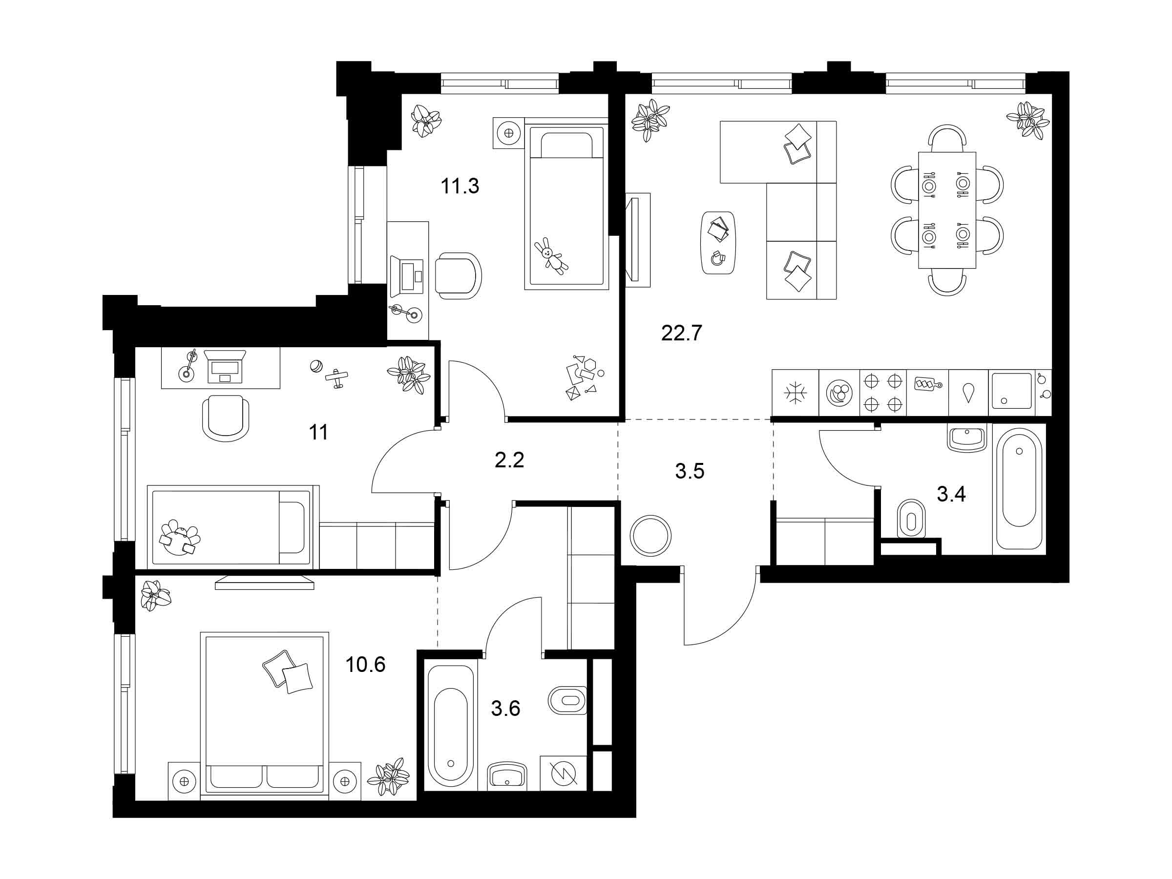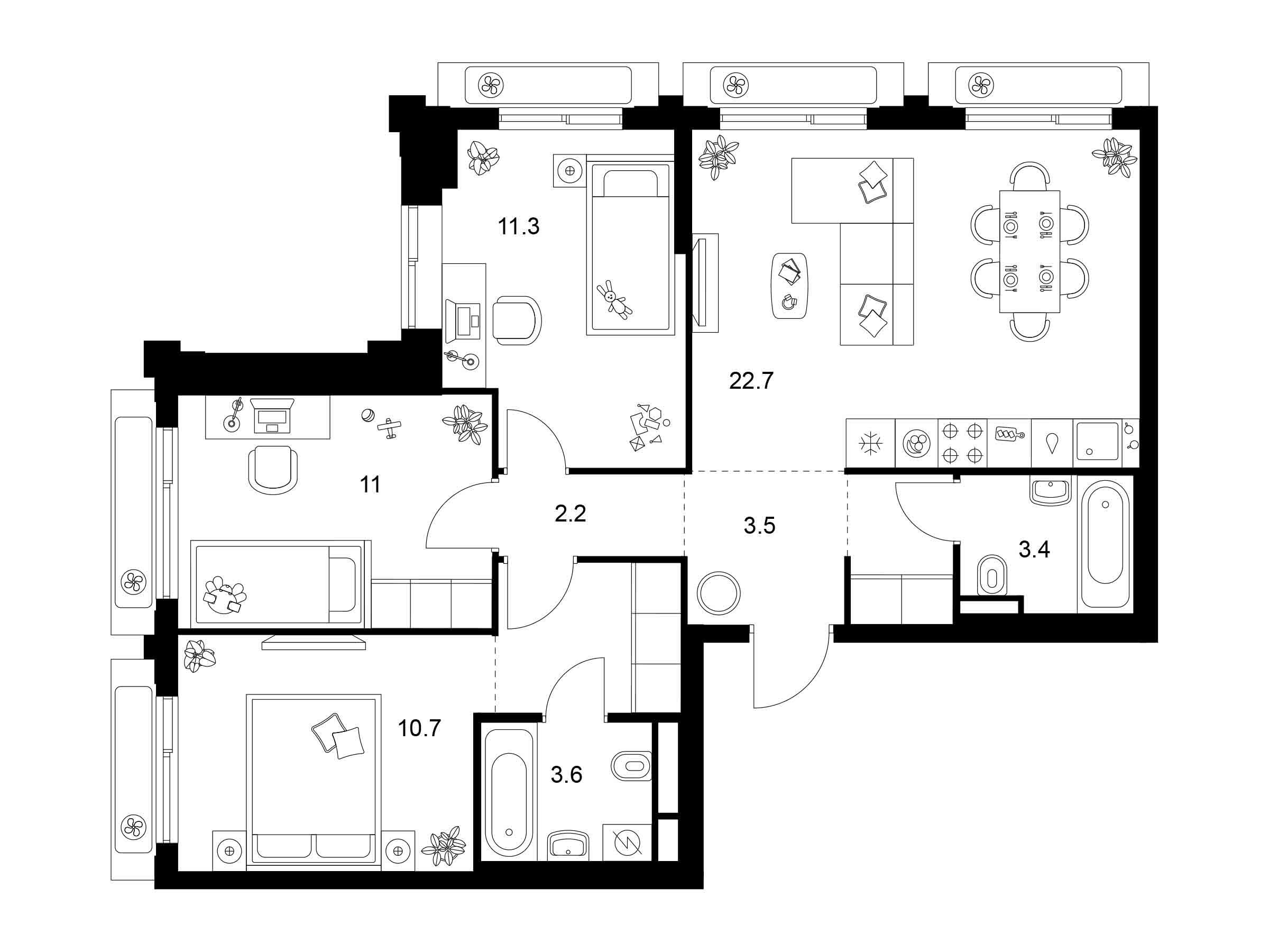 3-комнатная квартира, 82.80 м², 14 из 9 эт.