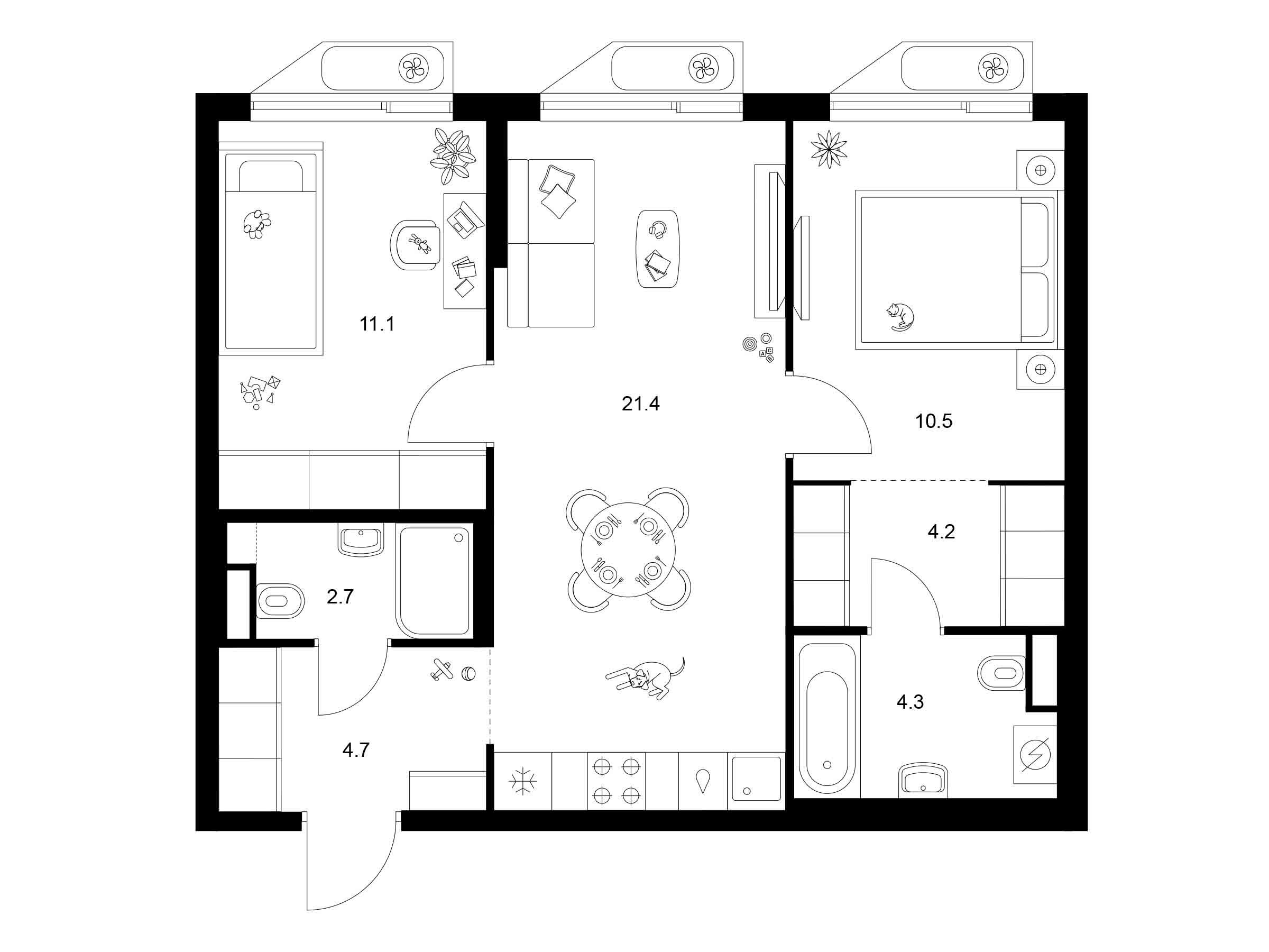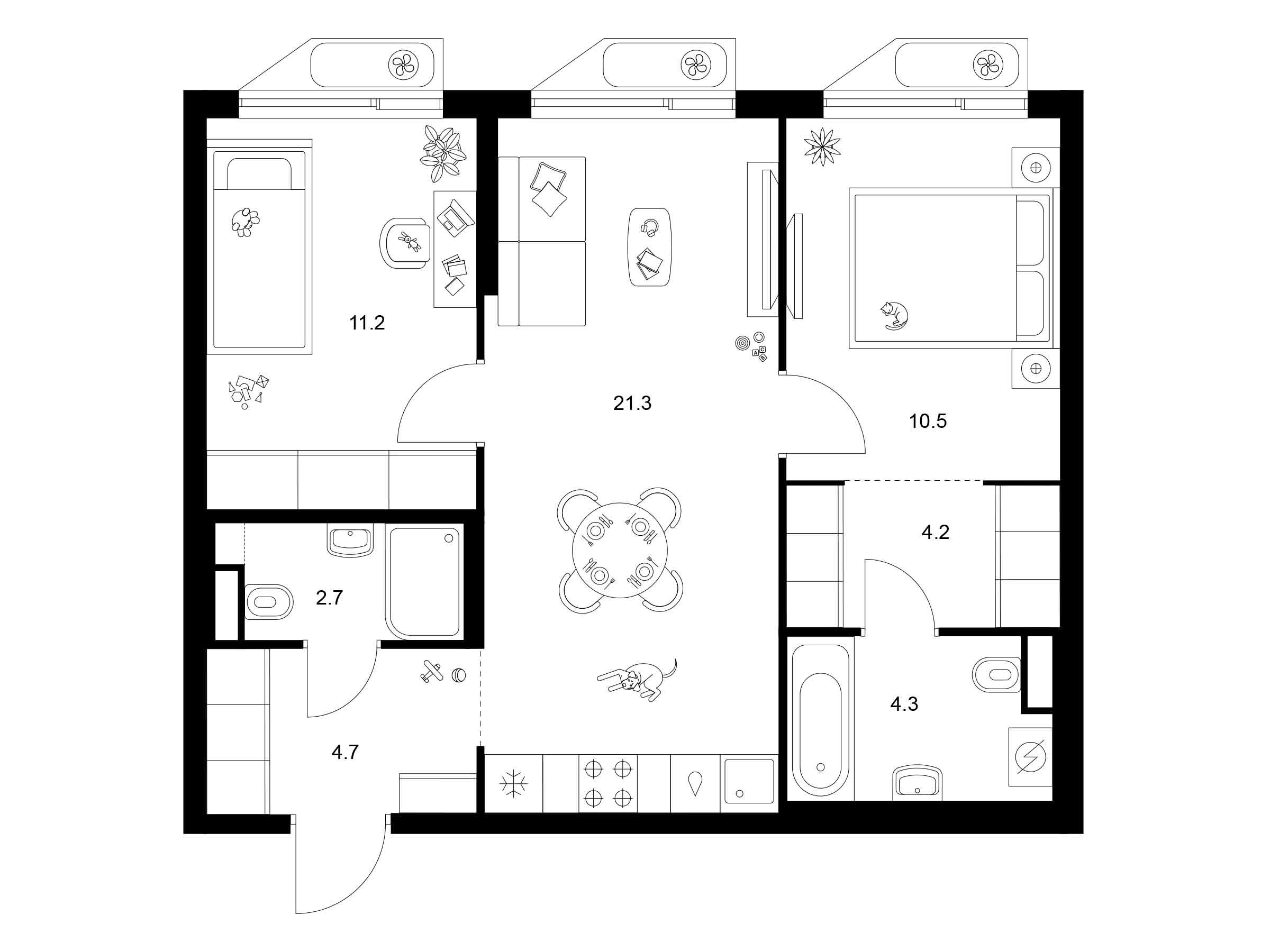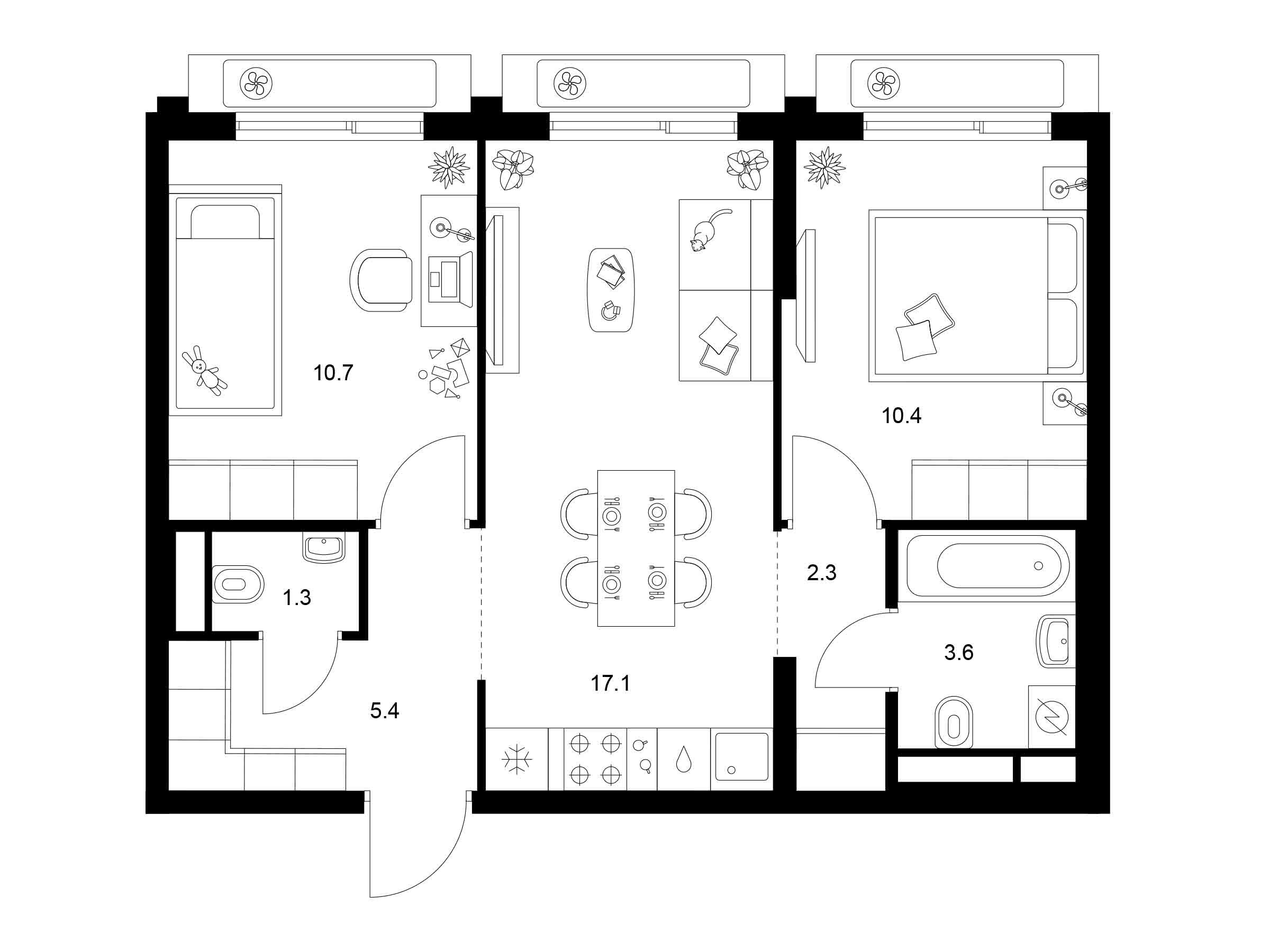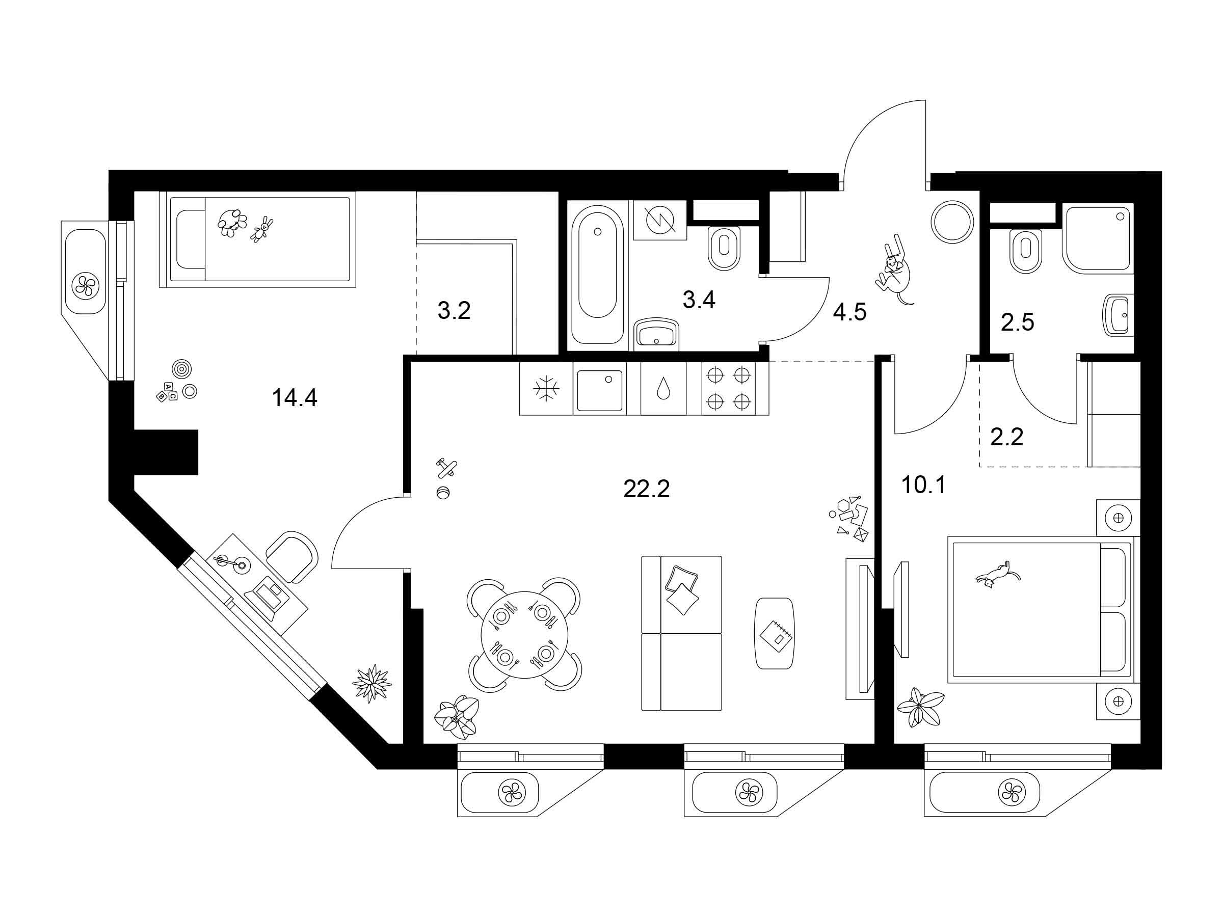 2-комнатная квартира, 60.10 м², 29 из 9 эт.