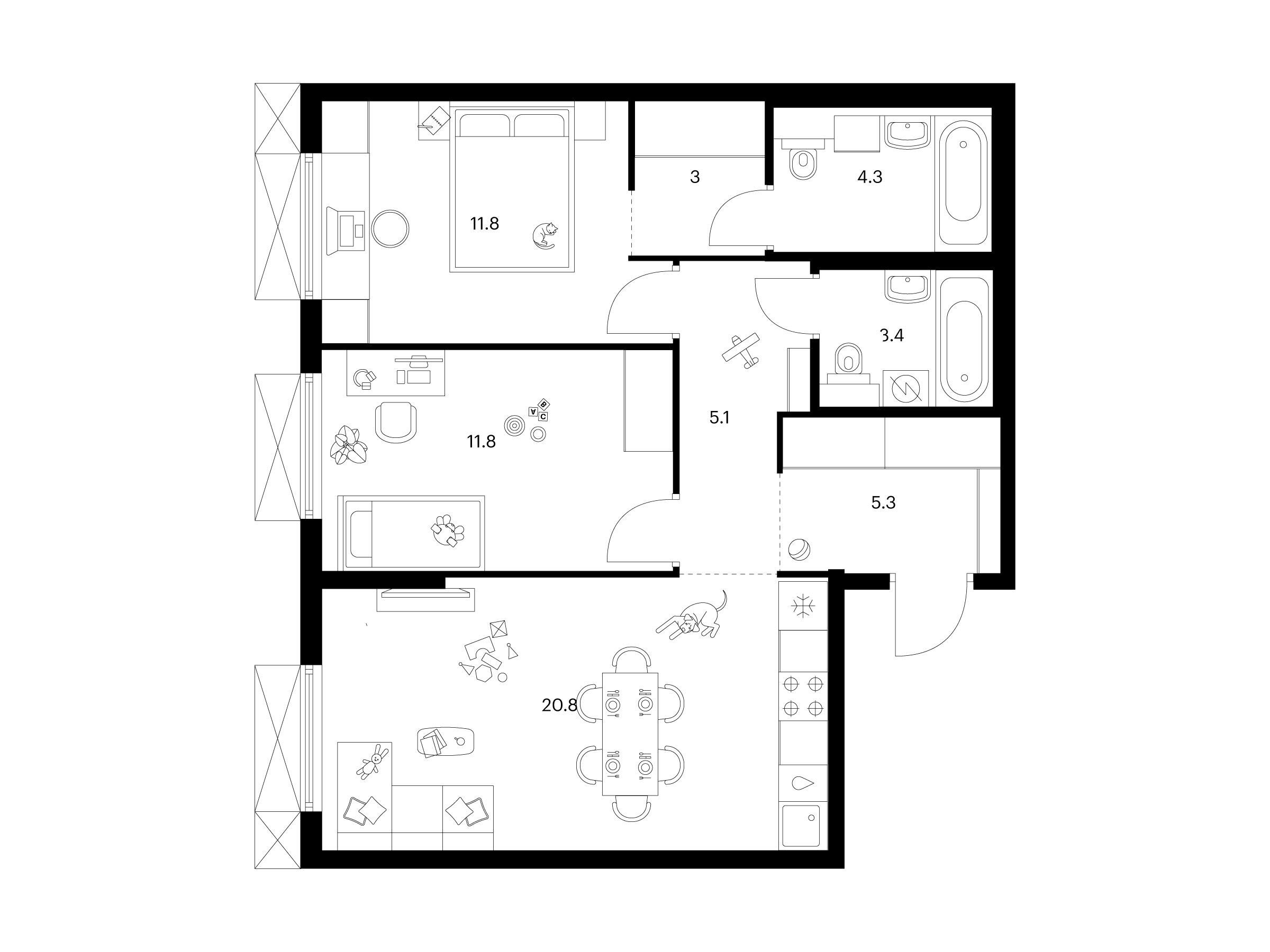 2-комнатная квартира, 58.00 м², 2 из 24 эт.