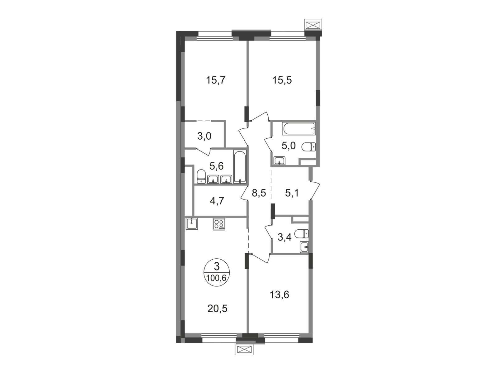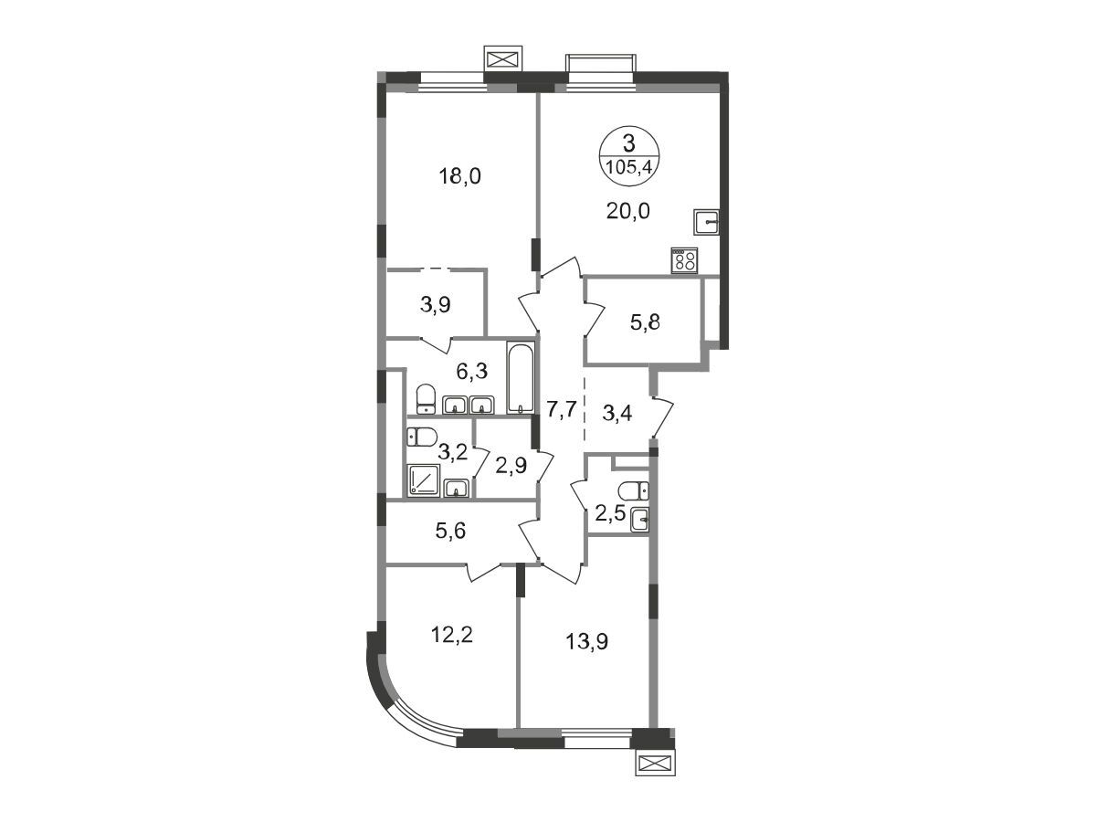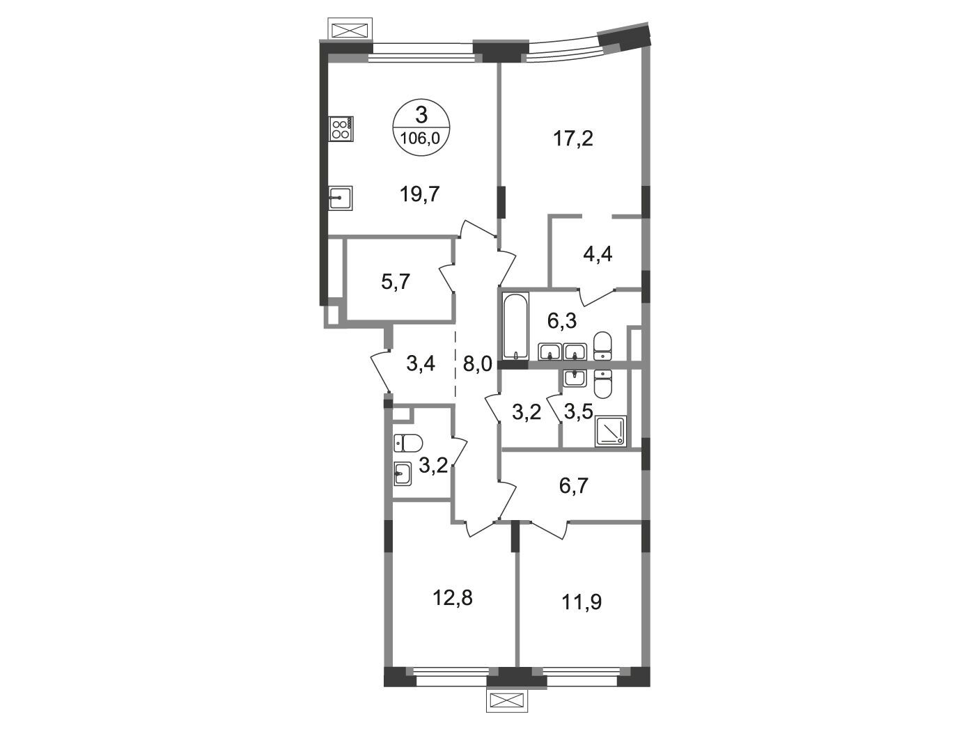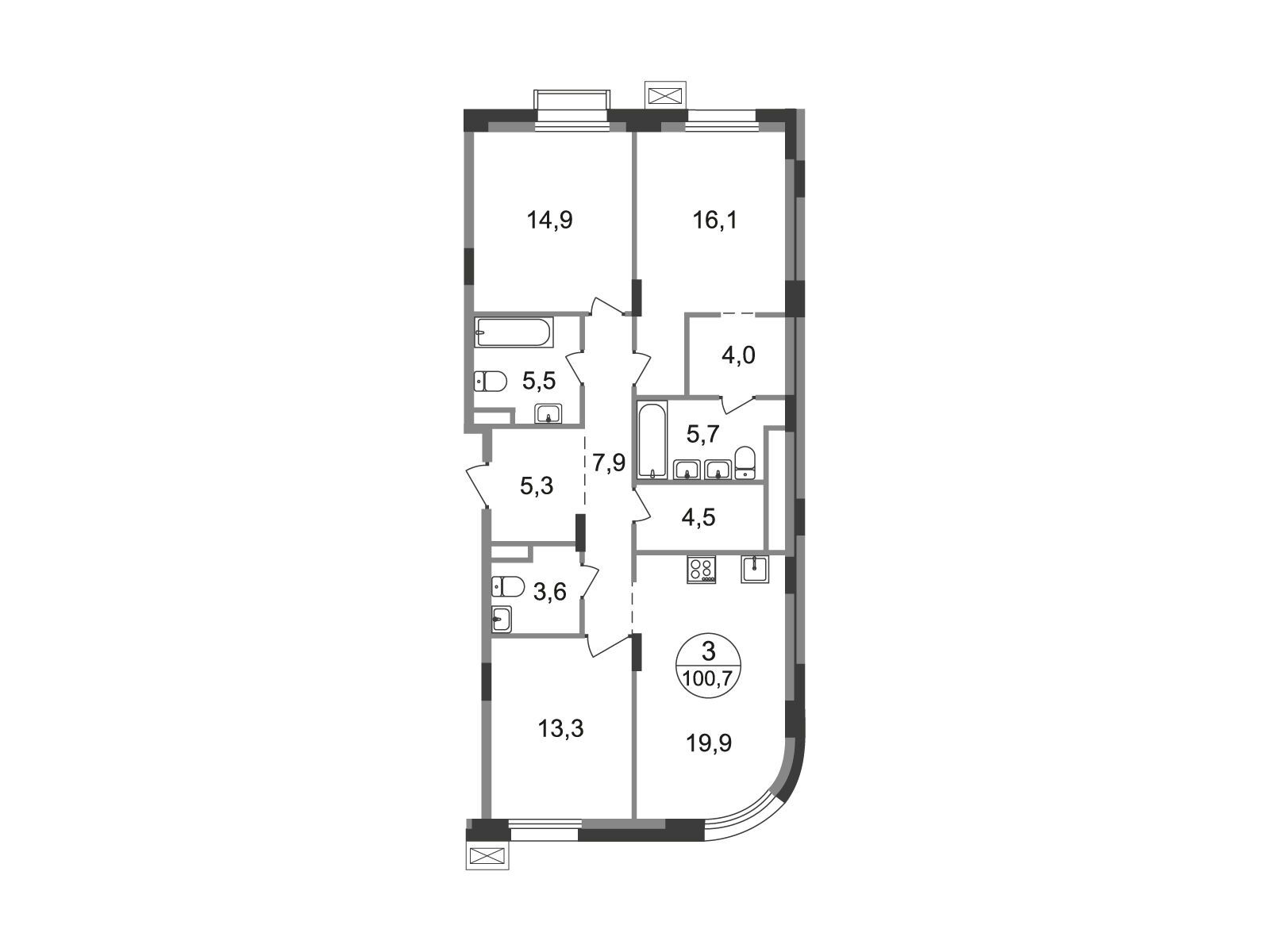 3-комнатная квартира, 99.70 м², 7 из 9 эт.