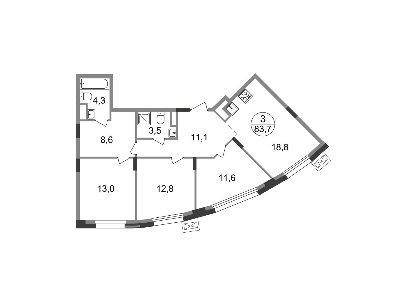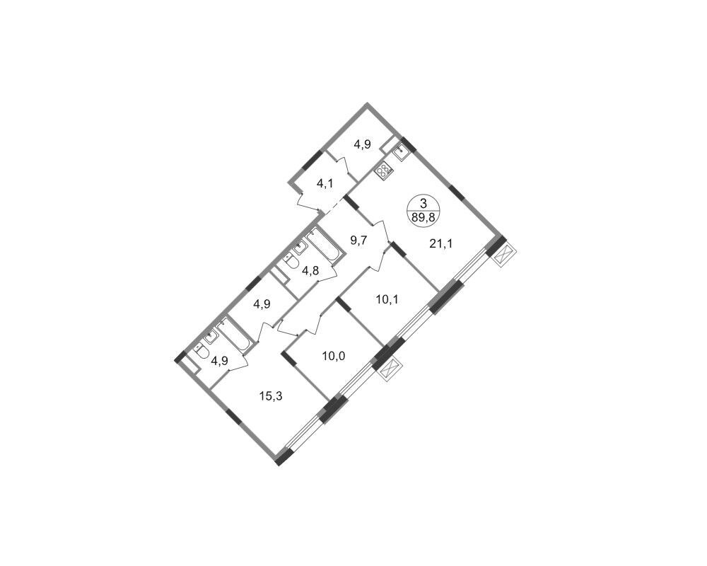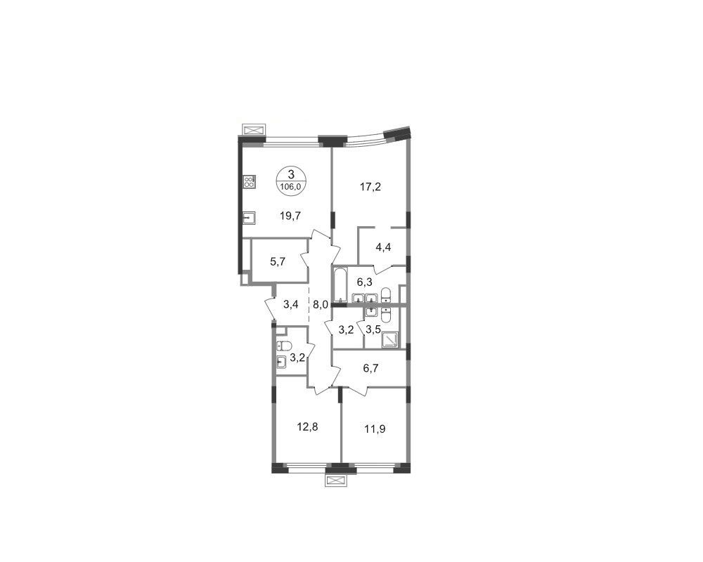 3-комнатная квартира, 100.70 м², 8 из 9 эт.