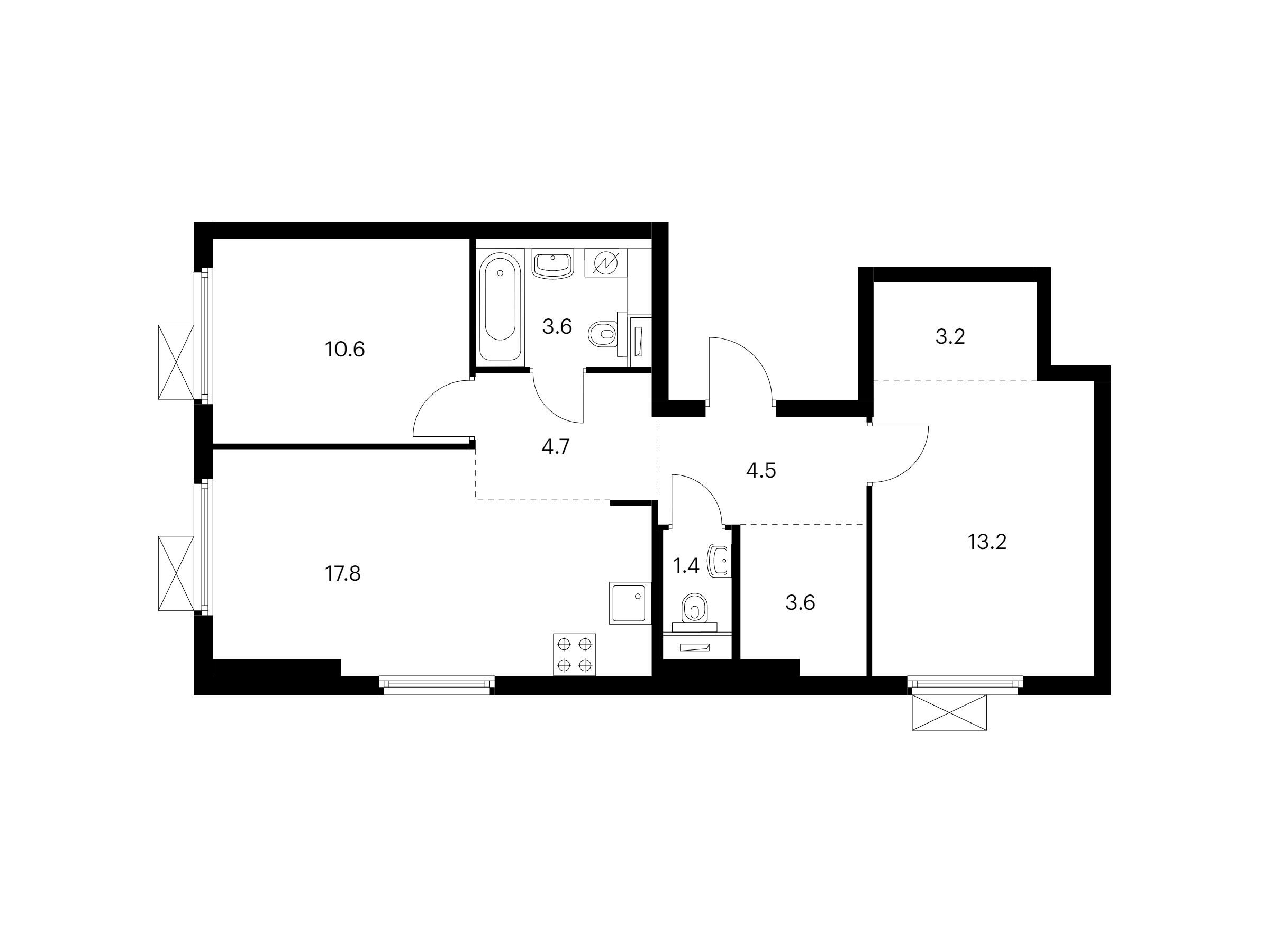 2-комнатная квартира, 50.70 м², 33 из 33 эт.