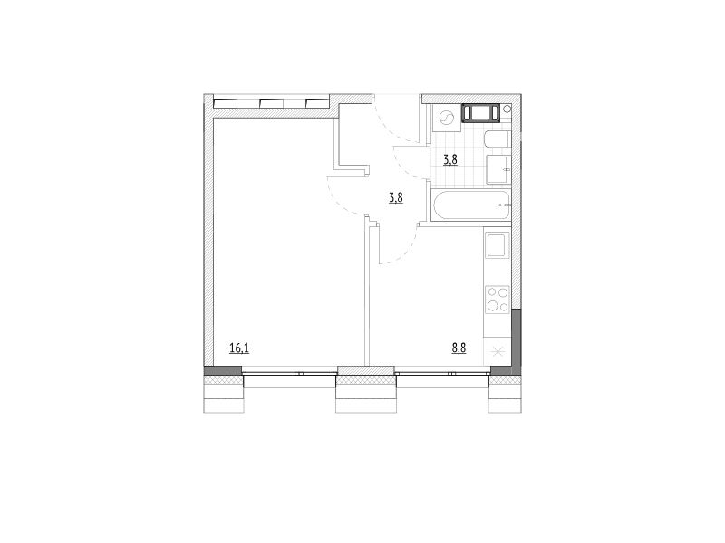 1-комнатная, 35.70 м²