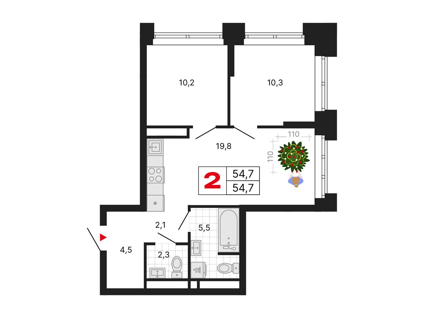 2-комнатная квартира, 70.40 м², 10 из 29 эт.