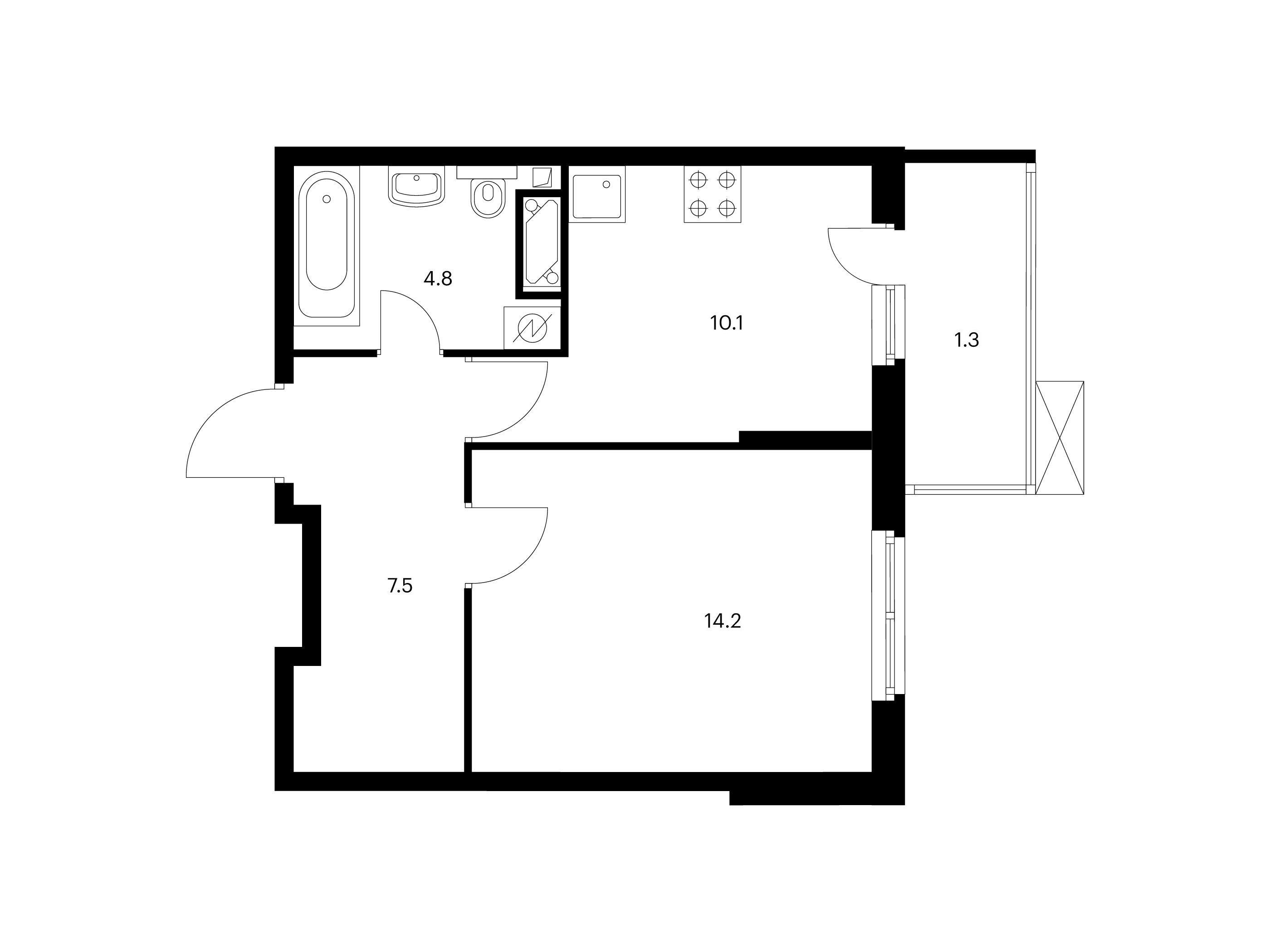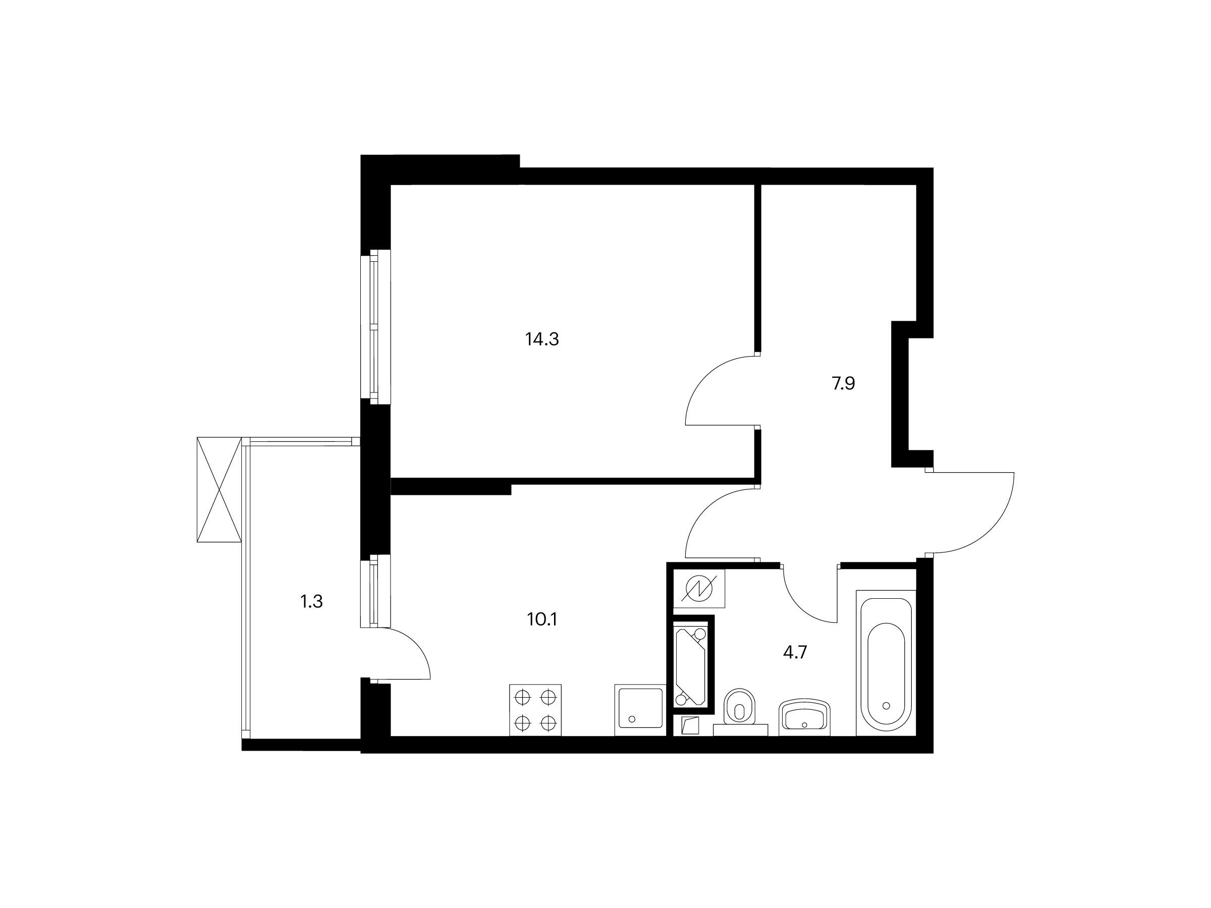 1-комнатная, 37.70 м²