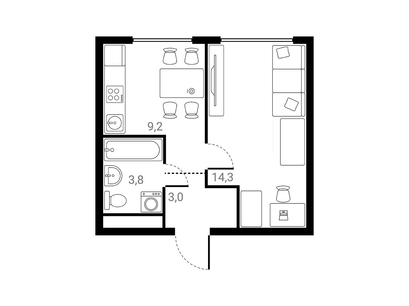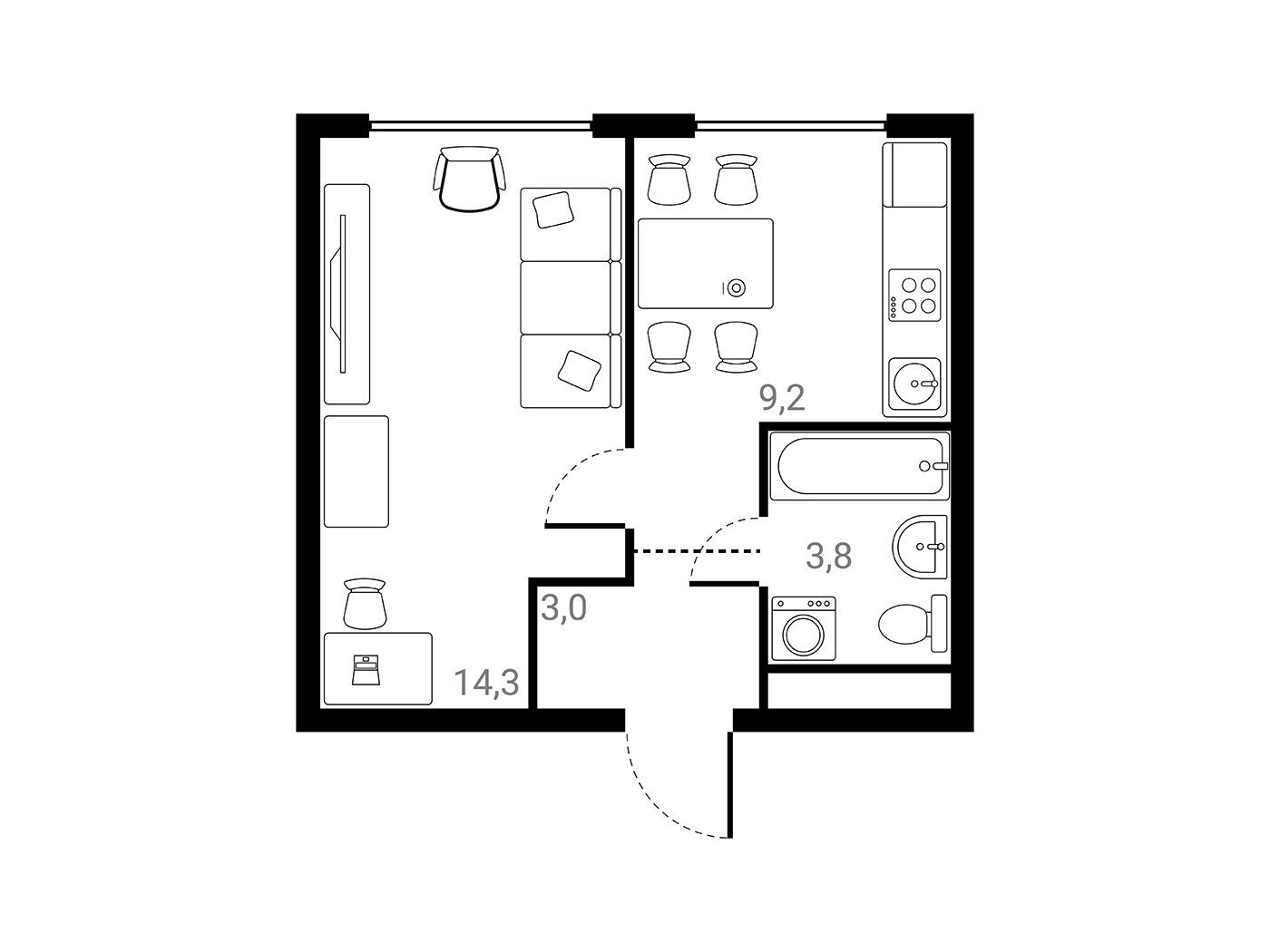 1-комнатная квартира, 30.30 м², 7 из 25 эт.