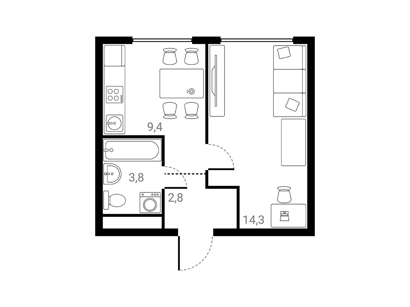 1-комнатная, 30.30 м²