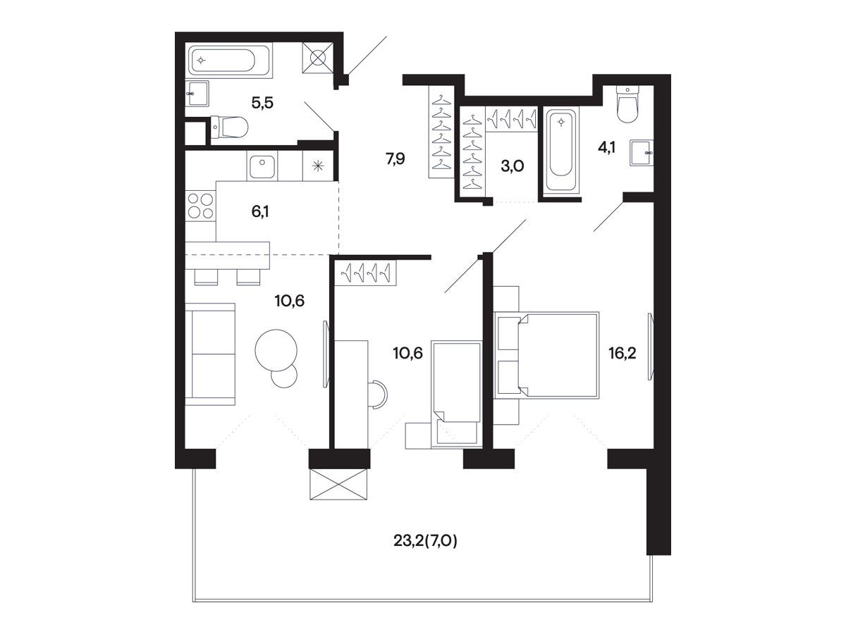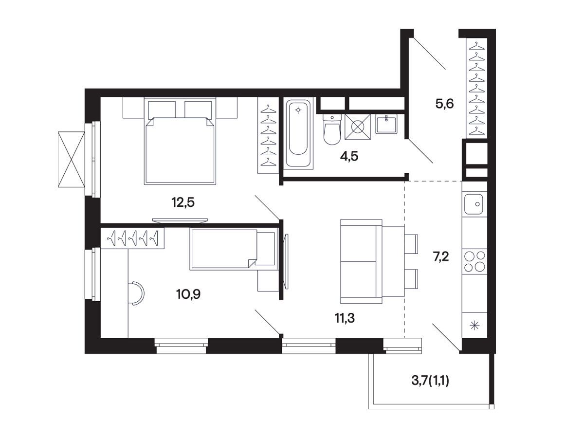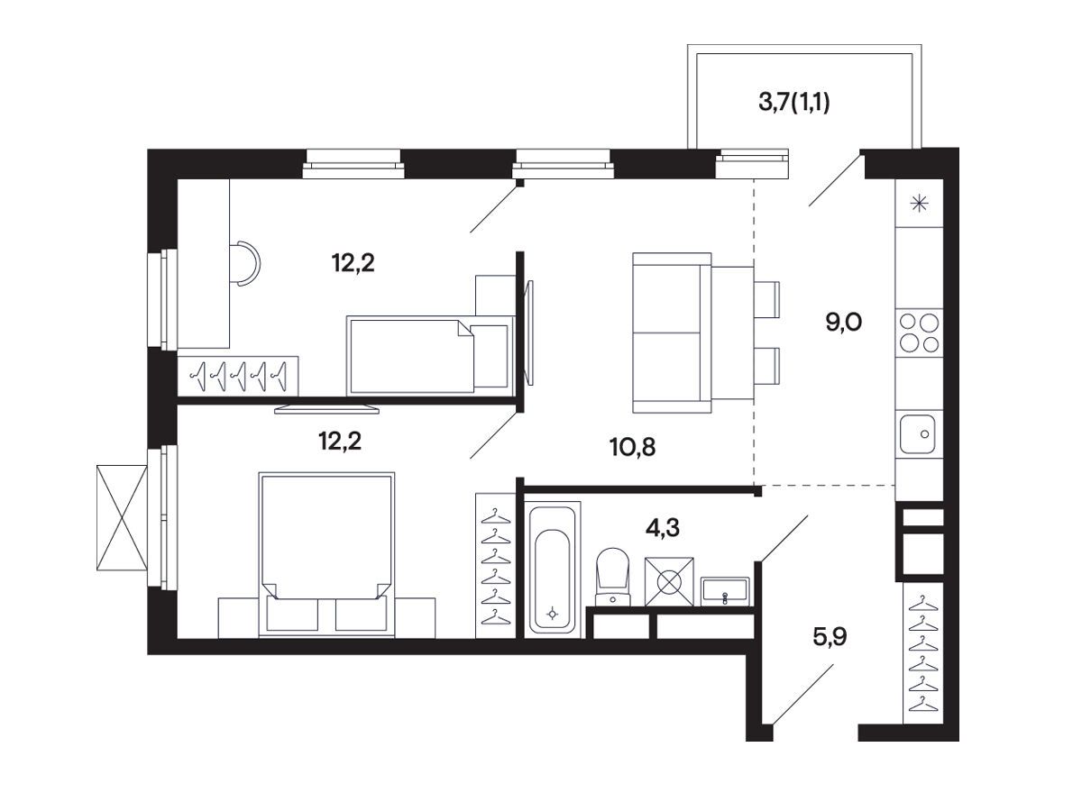 2-комнатная, 53.10 м²