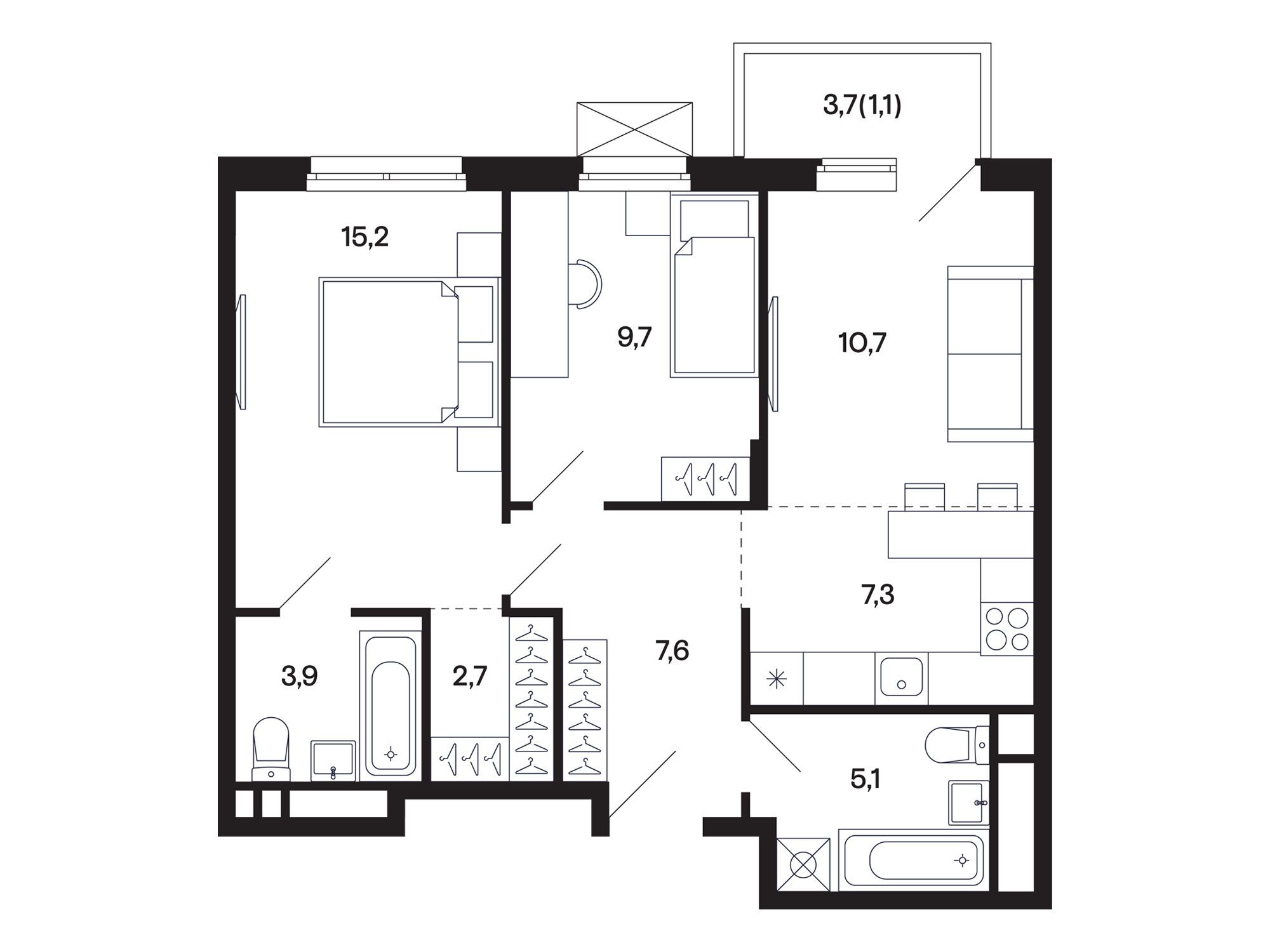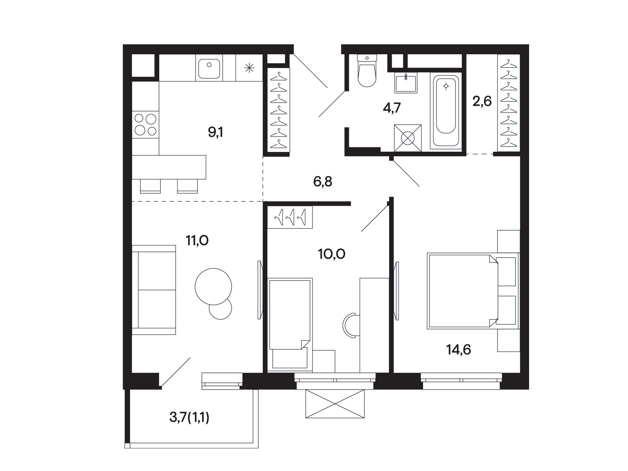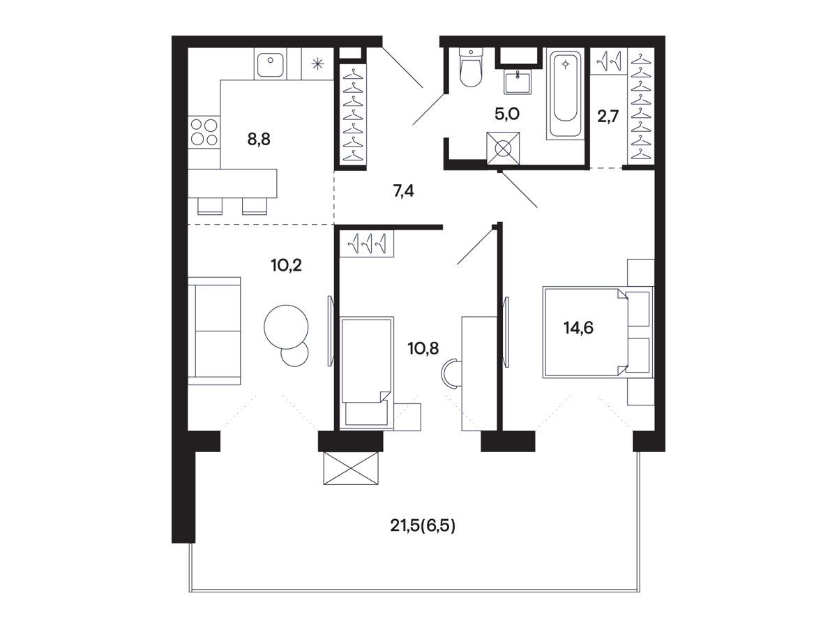2-комнатная, 53.10 м²