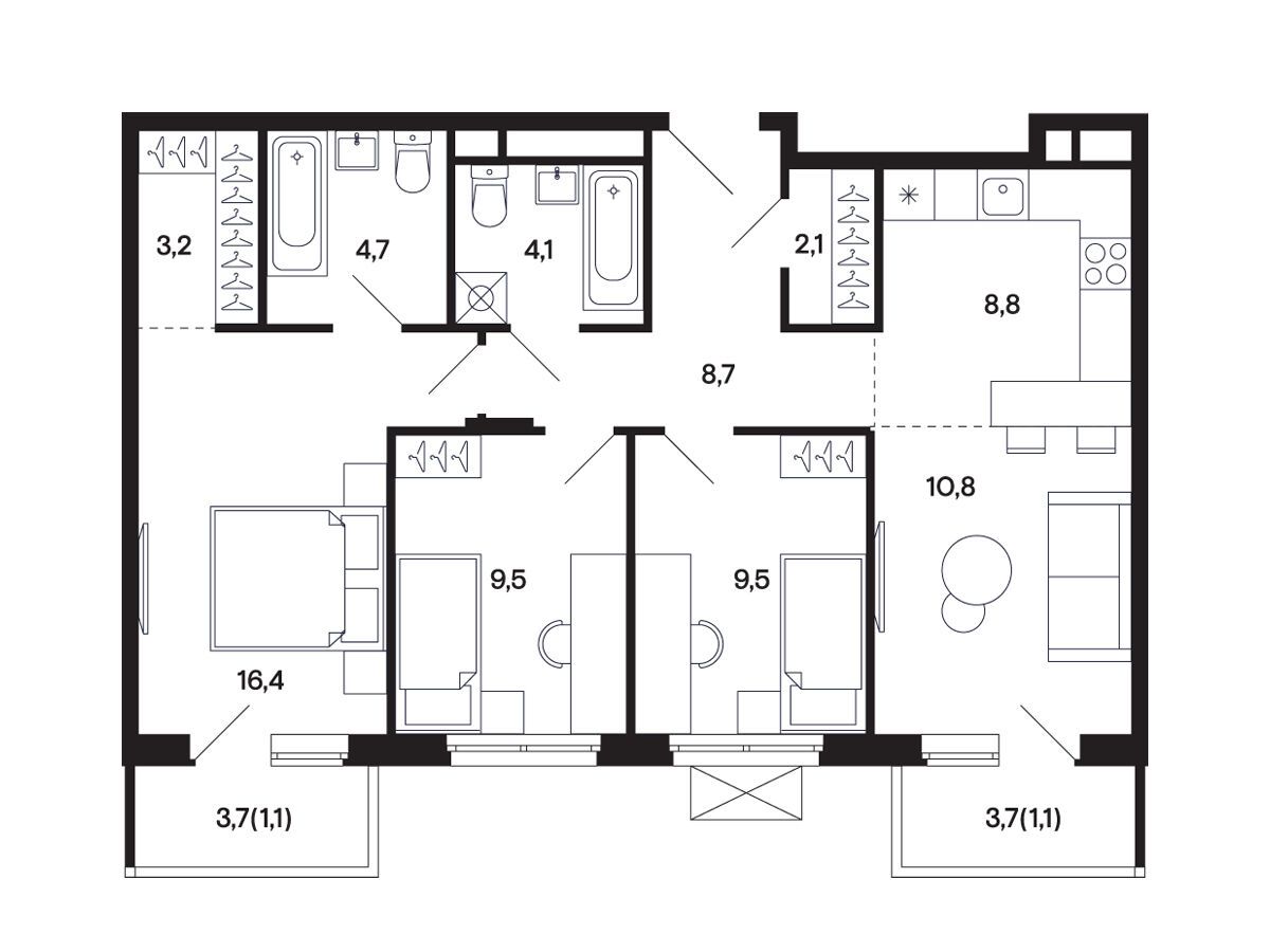 3-комнатная квартира, 80.00 м², 5 из 5 эт.