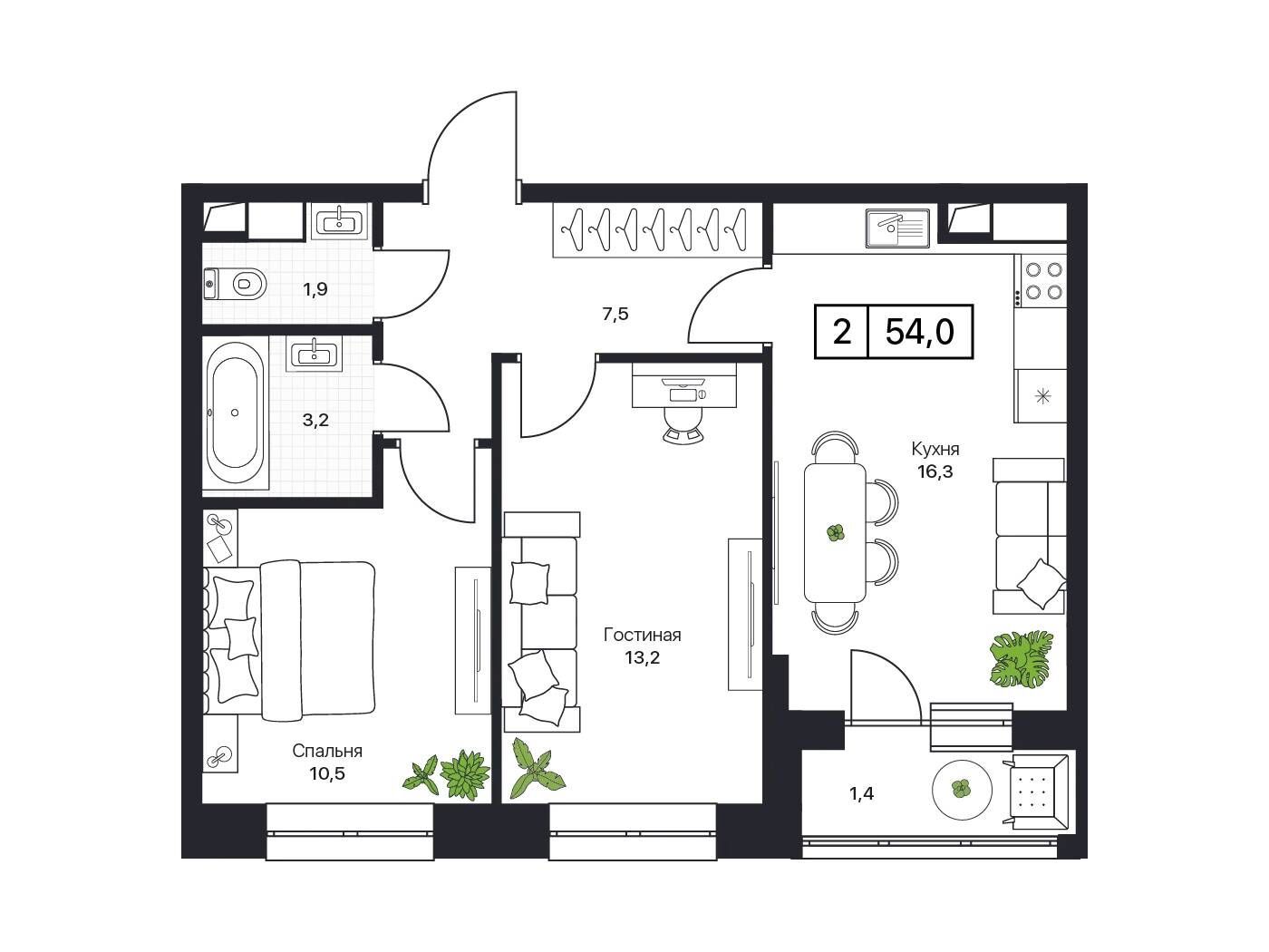 2-комнатная квартира, 59.90 м², 2 из 13 эт.