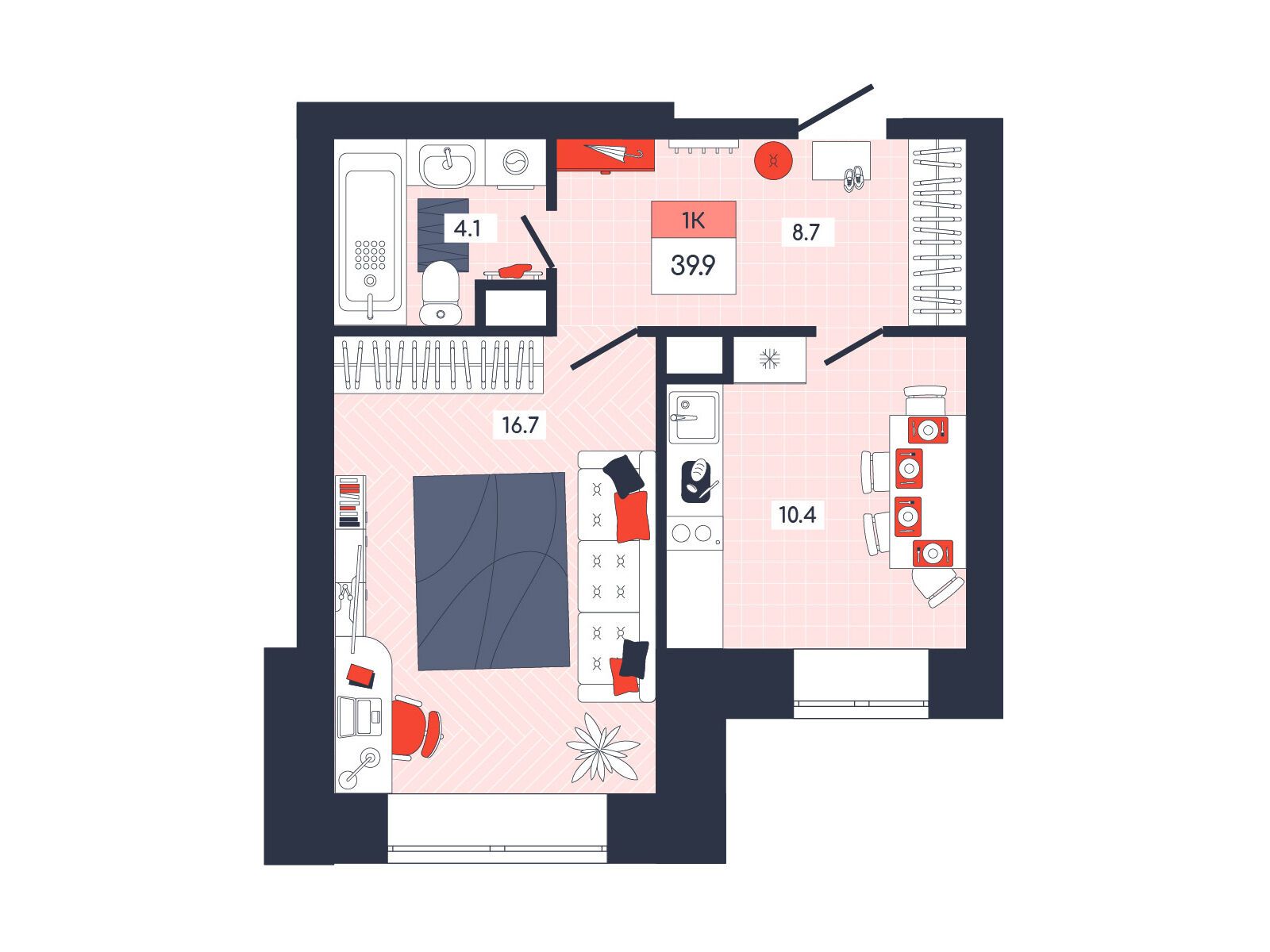 1-комнатная, 43.40 м²
