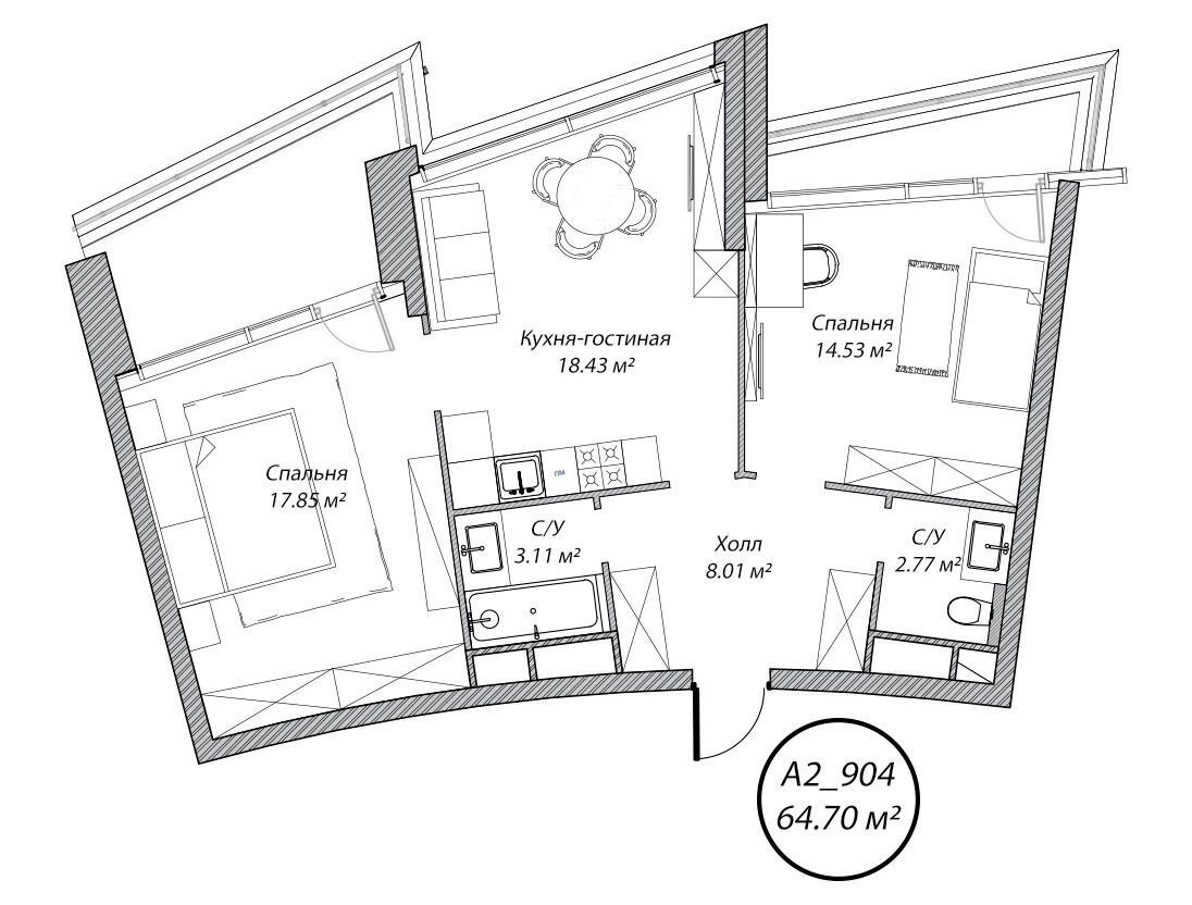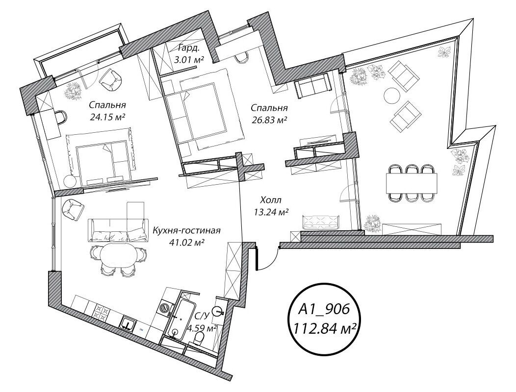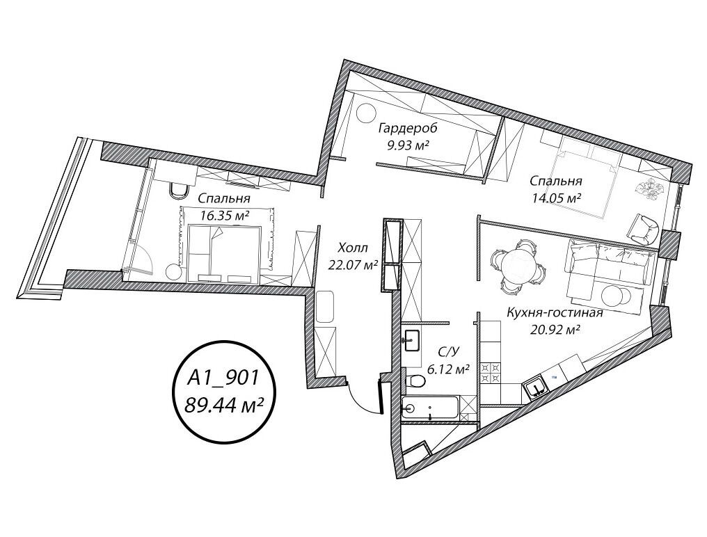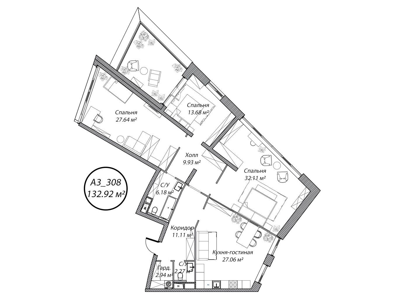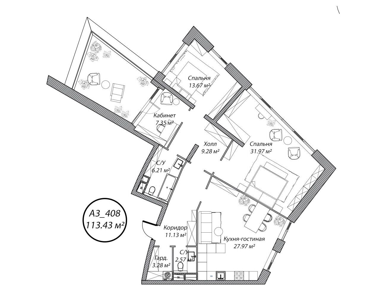 3-комнатная квартира, 104.50 м², 5 из 13 эт.