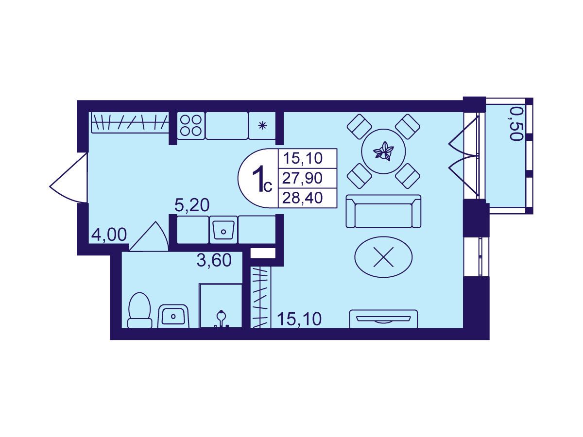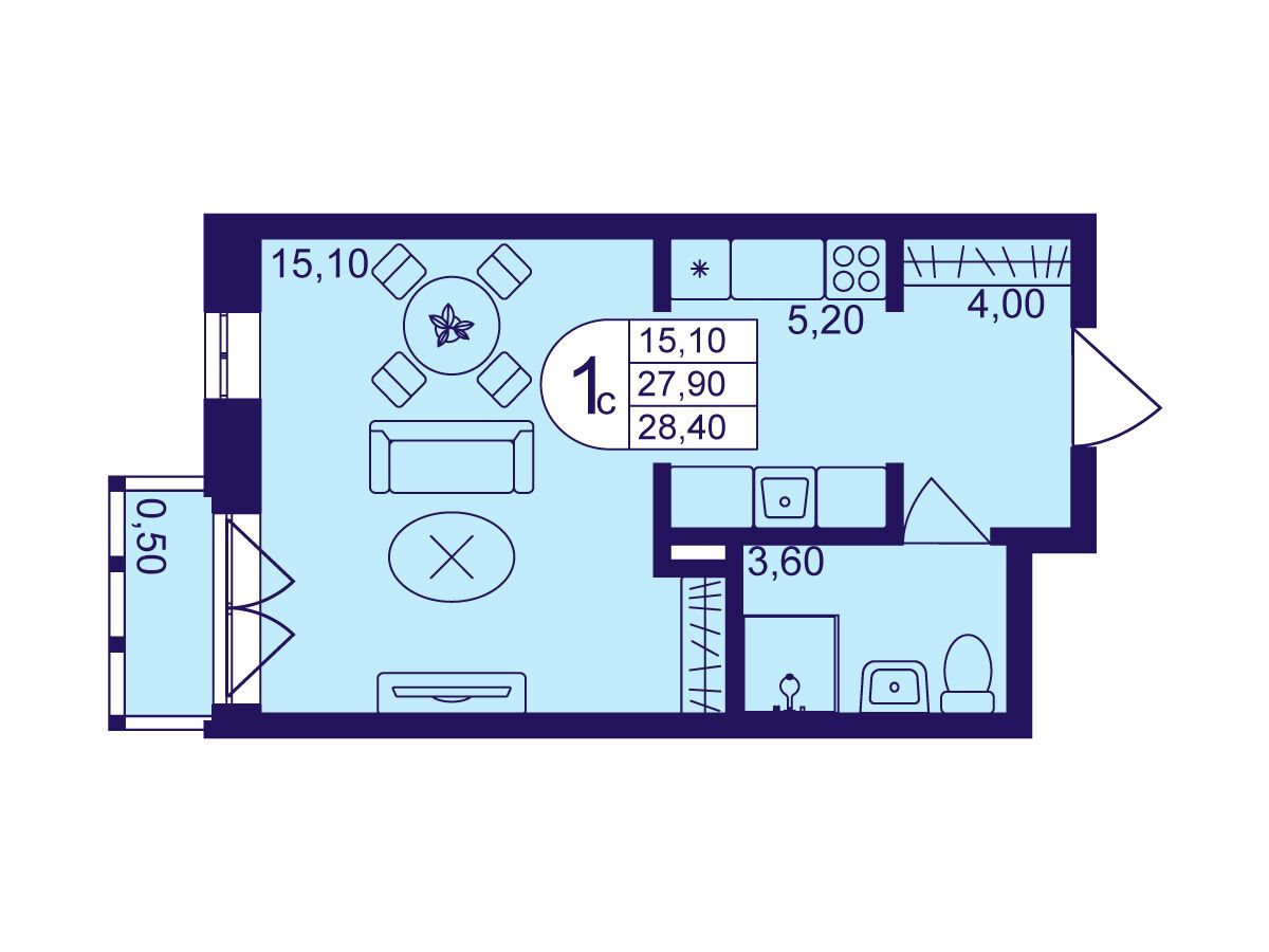 Студия, 28.20 м²