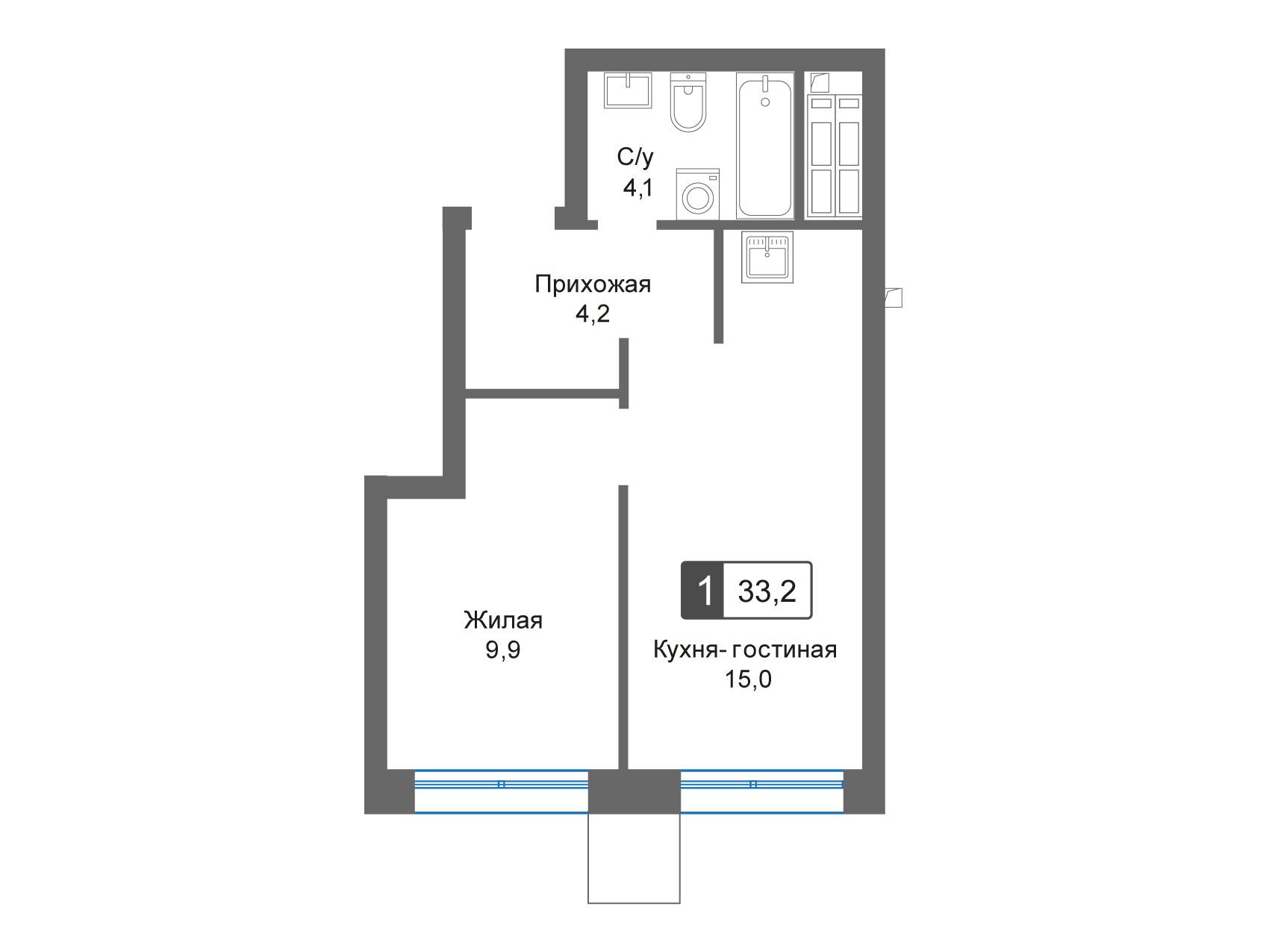 1-комнатная квартира, 33.20 м², 23 из 31 эт.