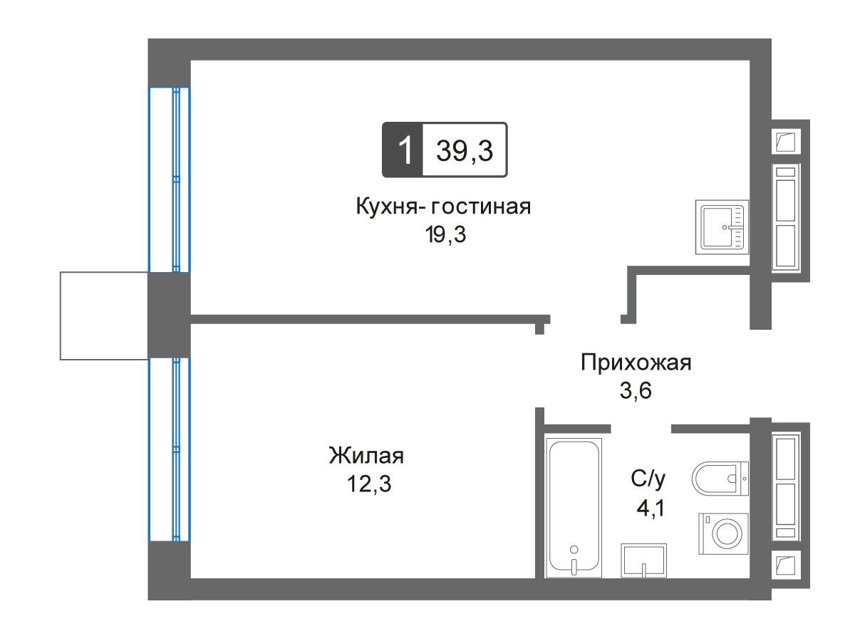 1-комнатная квартира, 39.20 м², 26 из 31 эт.