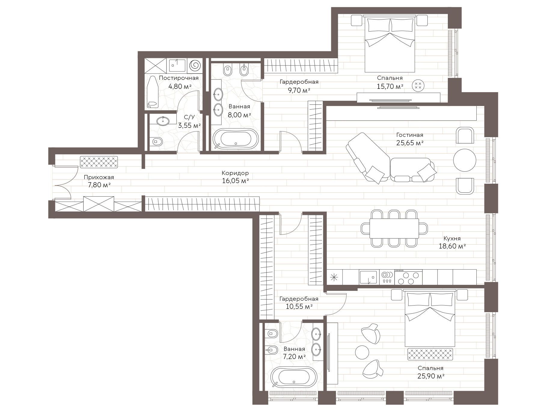 2-комнатная квартира, 152.55 м², 2 из 7 эт.