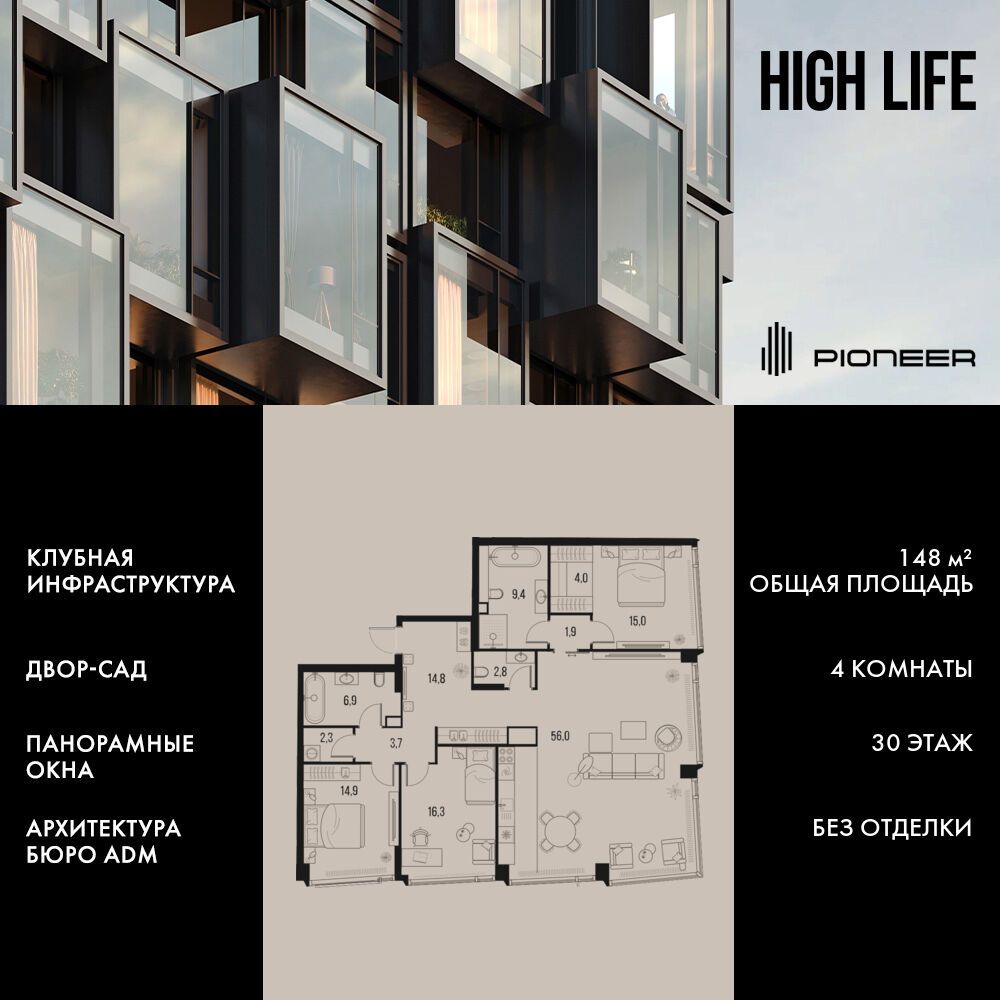 4-комнатная квартира, 125.50 м², 14 из 47 эт.