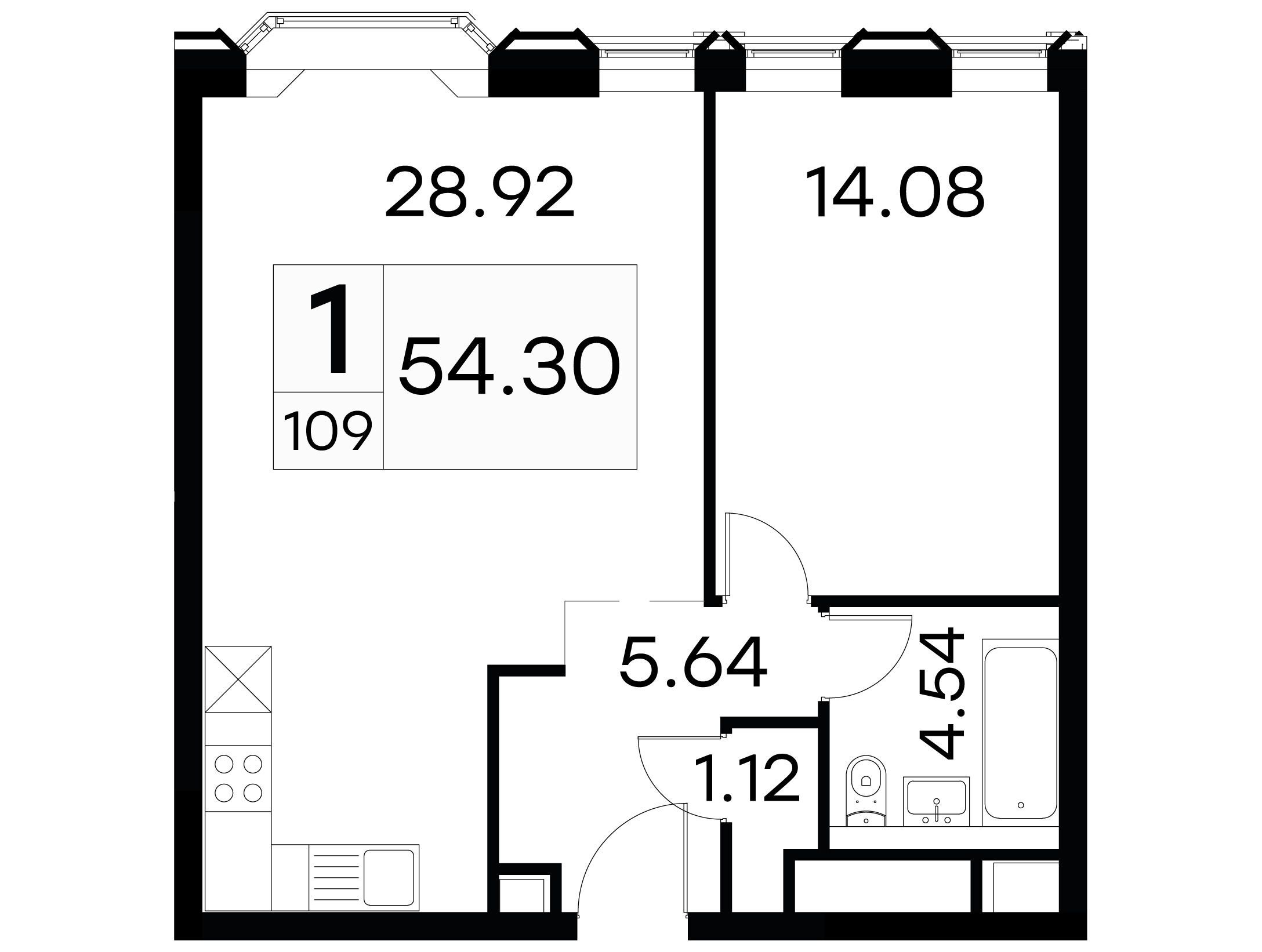 1-комнатная квартира, 52.60 м², 7 из 21 эт.