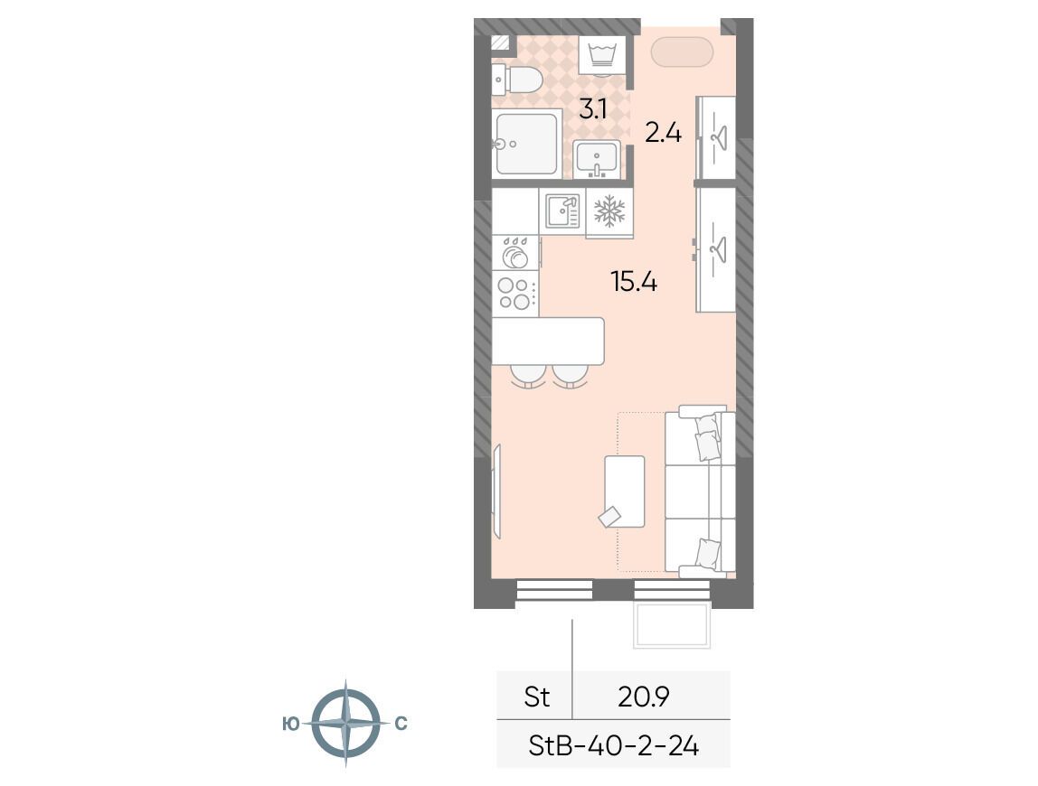 Студия, 20.92 м²