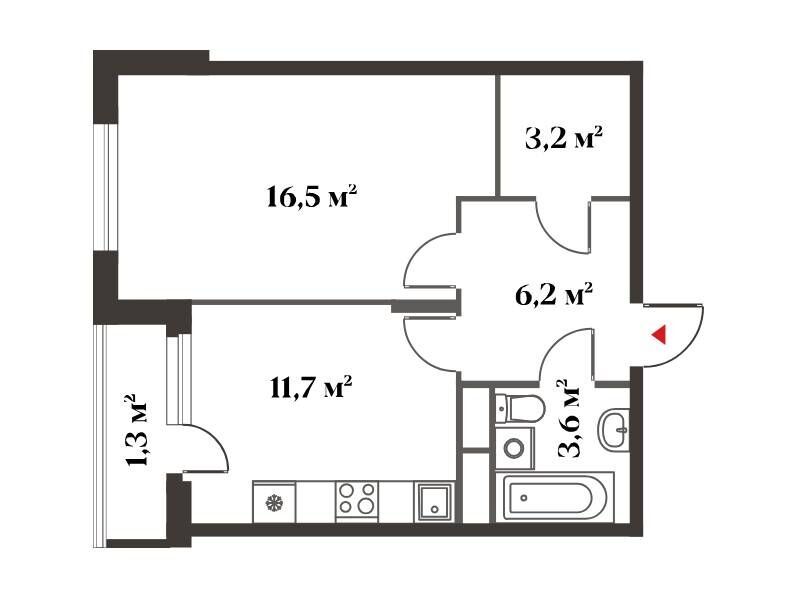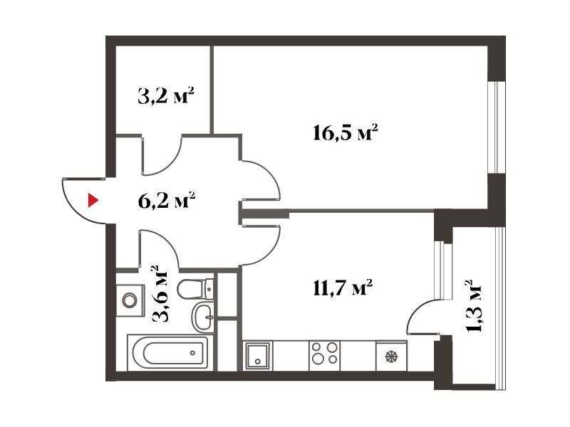 1-комнатная, 41.70 м²
