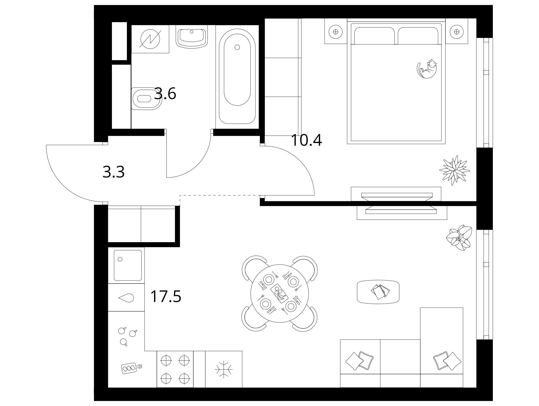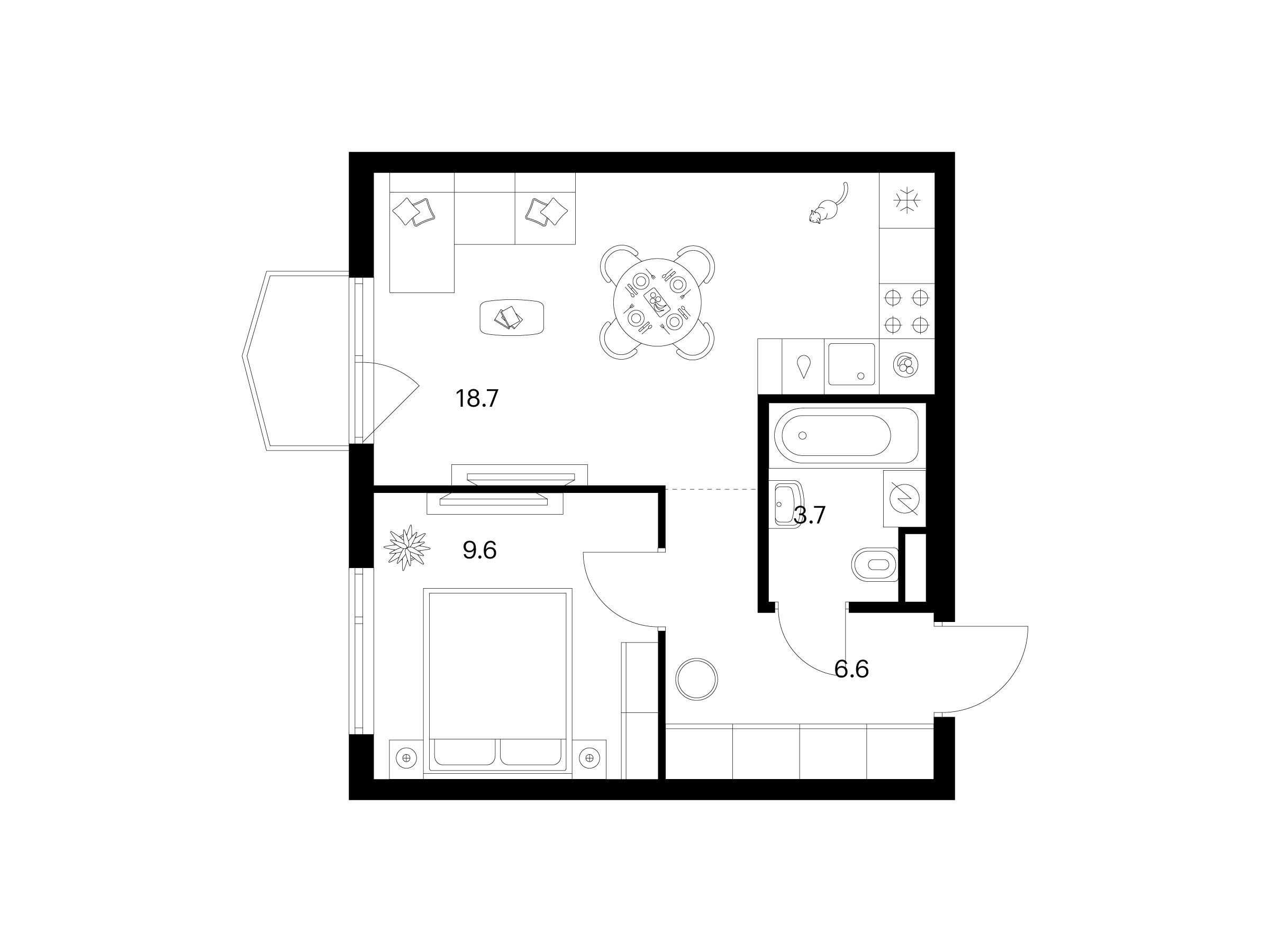 1-комнатная, 39.20 м²