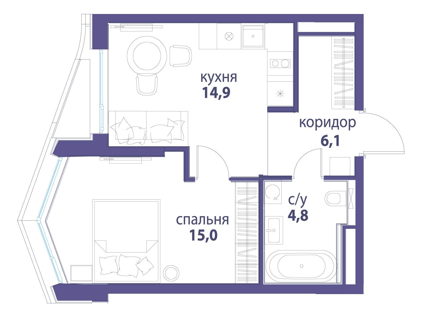 1-комнатная квартира, 35.90 м², 25 из 25 эт.