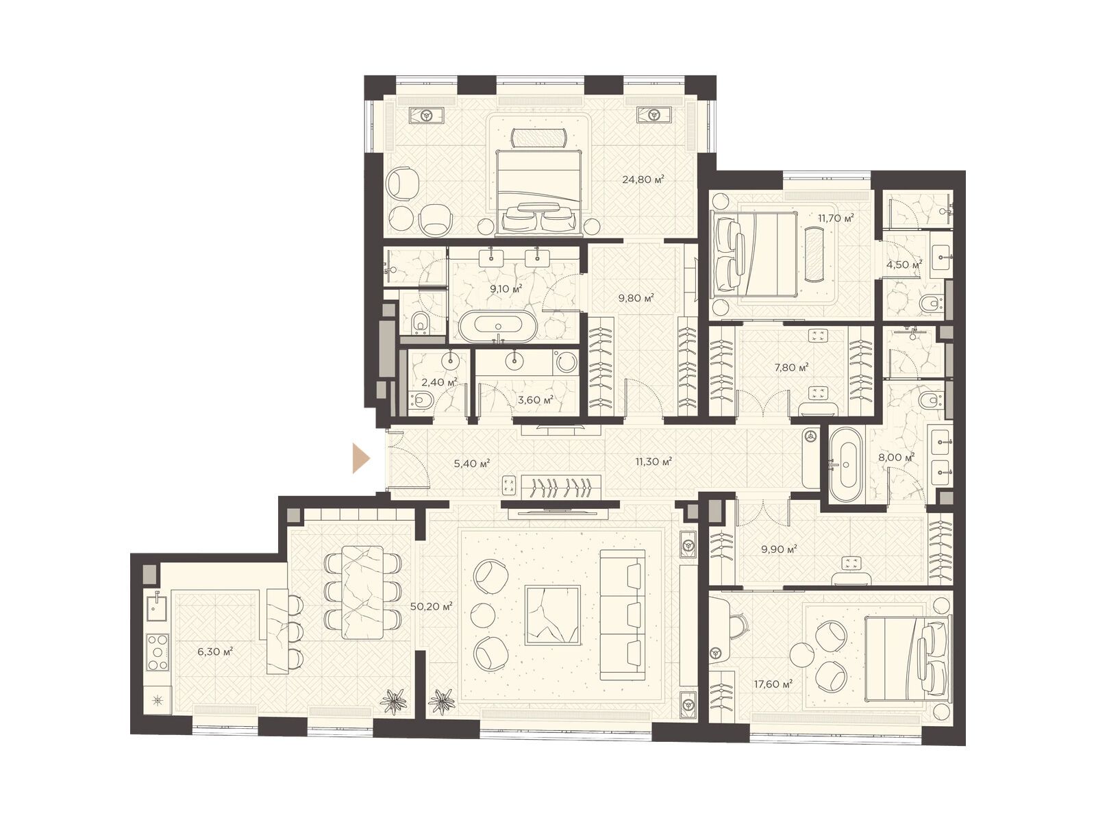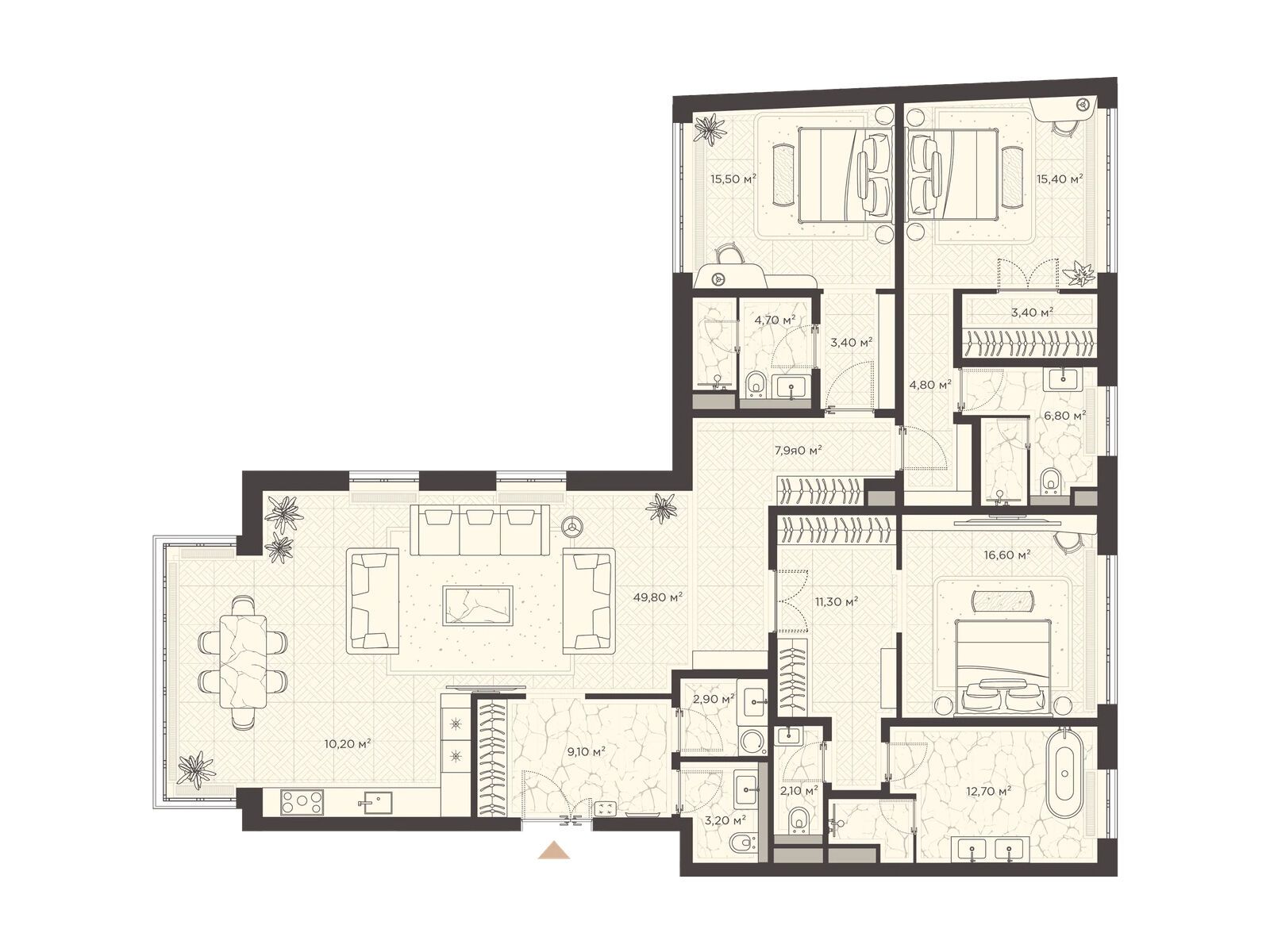 3-комнатная квартира, 192.70 м², 4 из 7 эт.