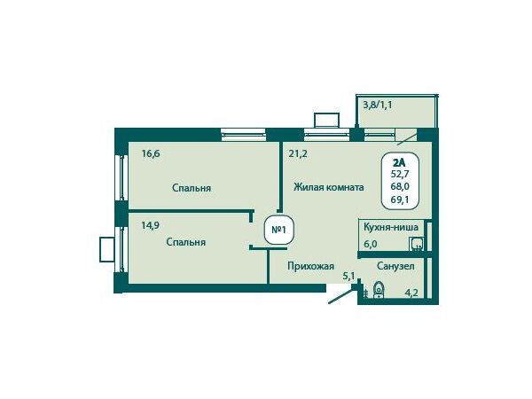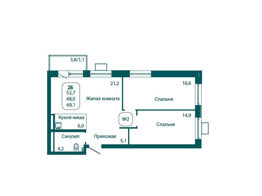 2-комнатная квартира, 69.10 м², 8 из 17 эт.