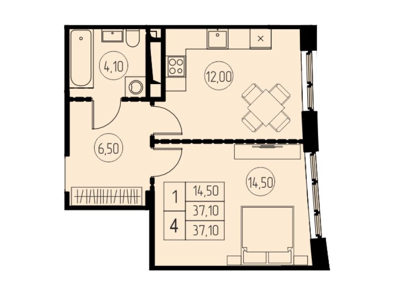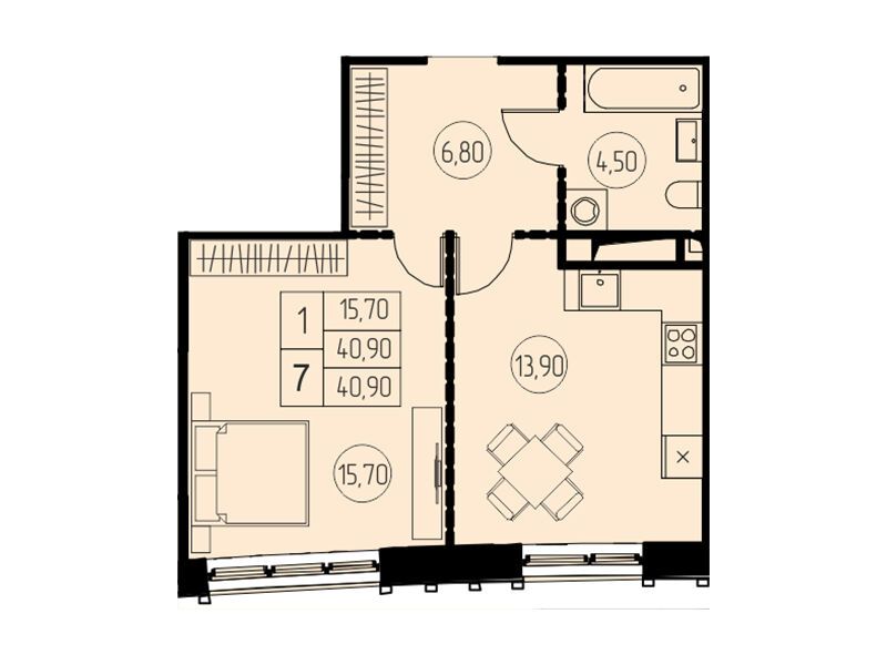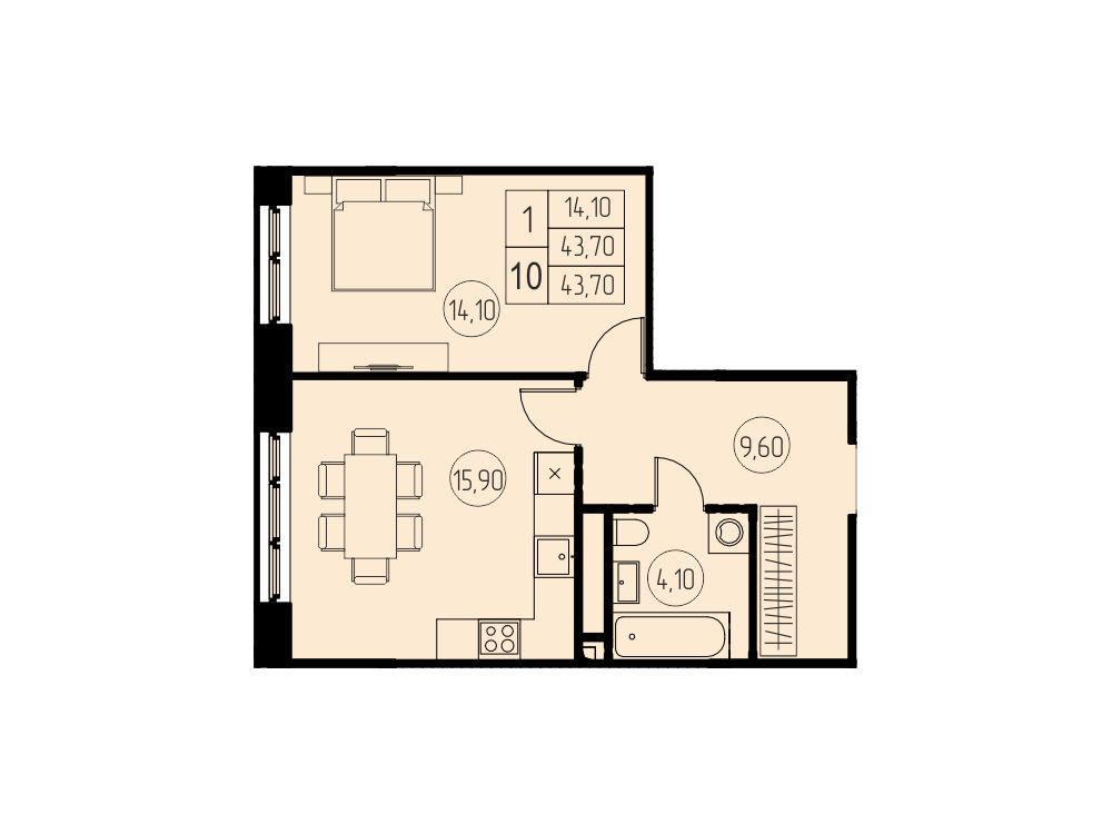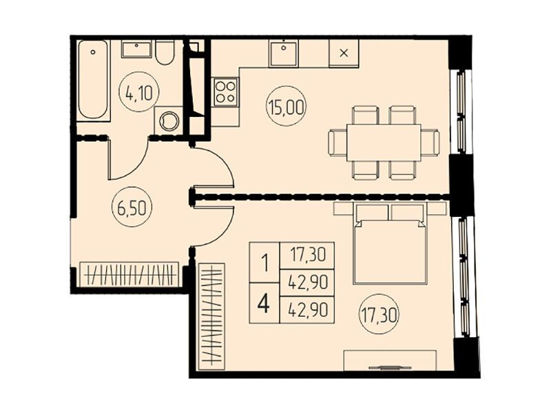 1-комнатная, 47.30 м²