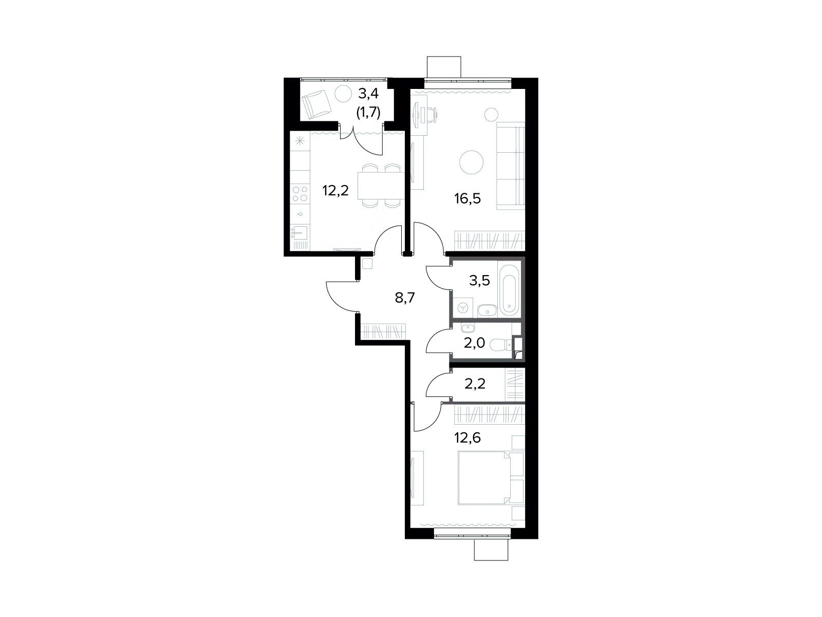2-комнатная квартира, 58.50 м², 15 из 21 эт.