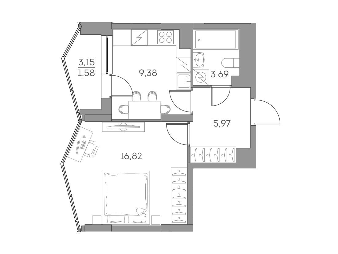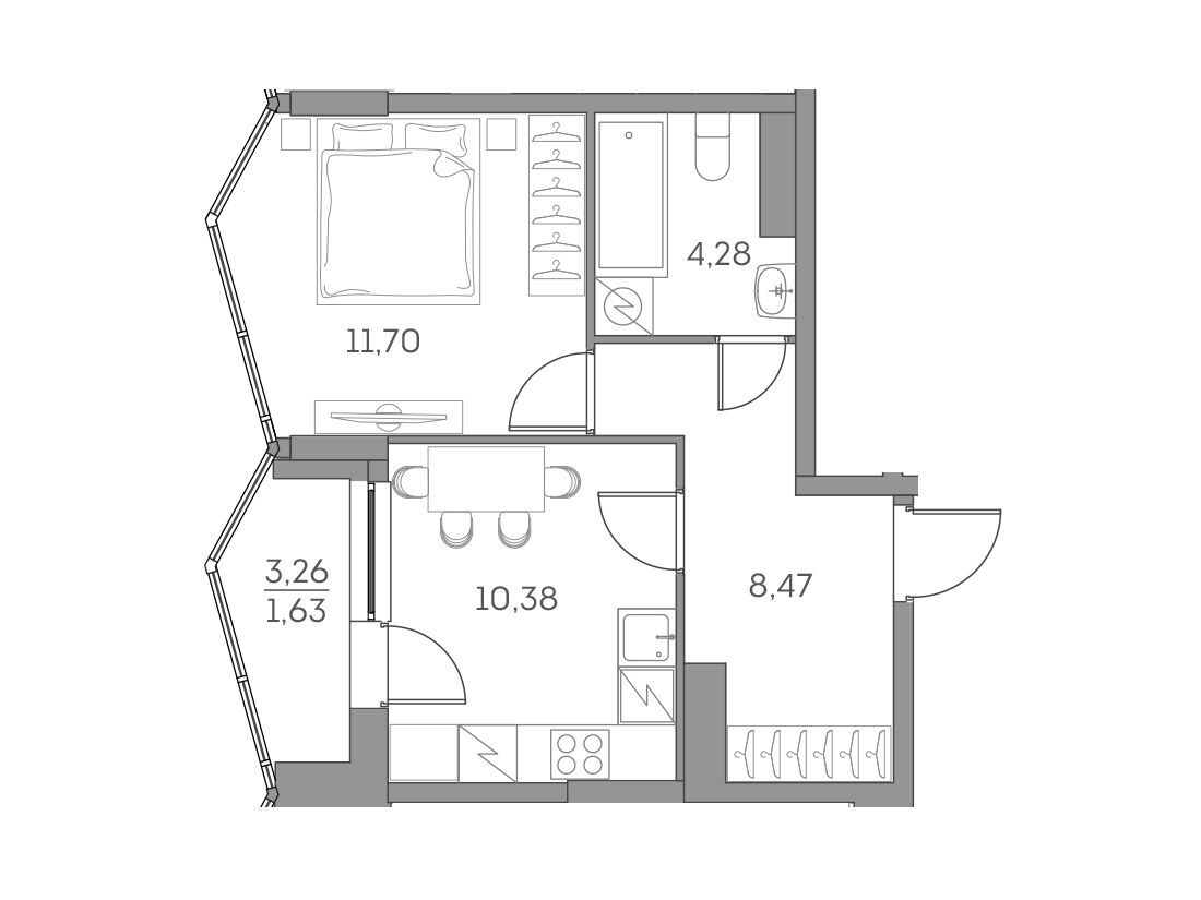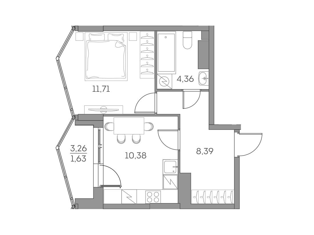 1-комнатная, 36.47 м²