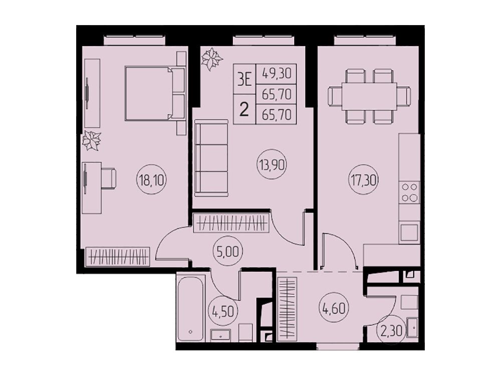 3-комнатная квартира, 65.70 м², 21 из 23 эт.