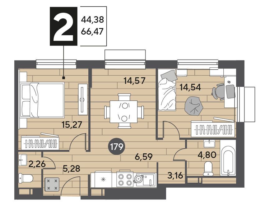 2-комнатная квартира, 47.89 м², 11 из 12 эт.