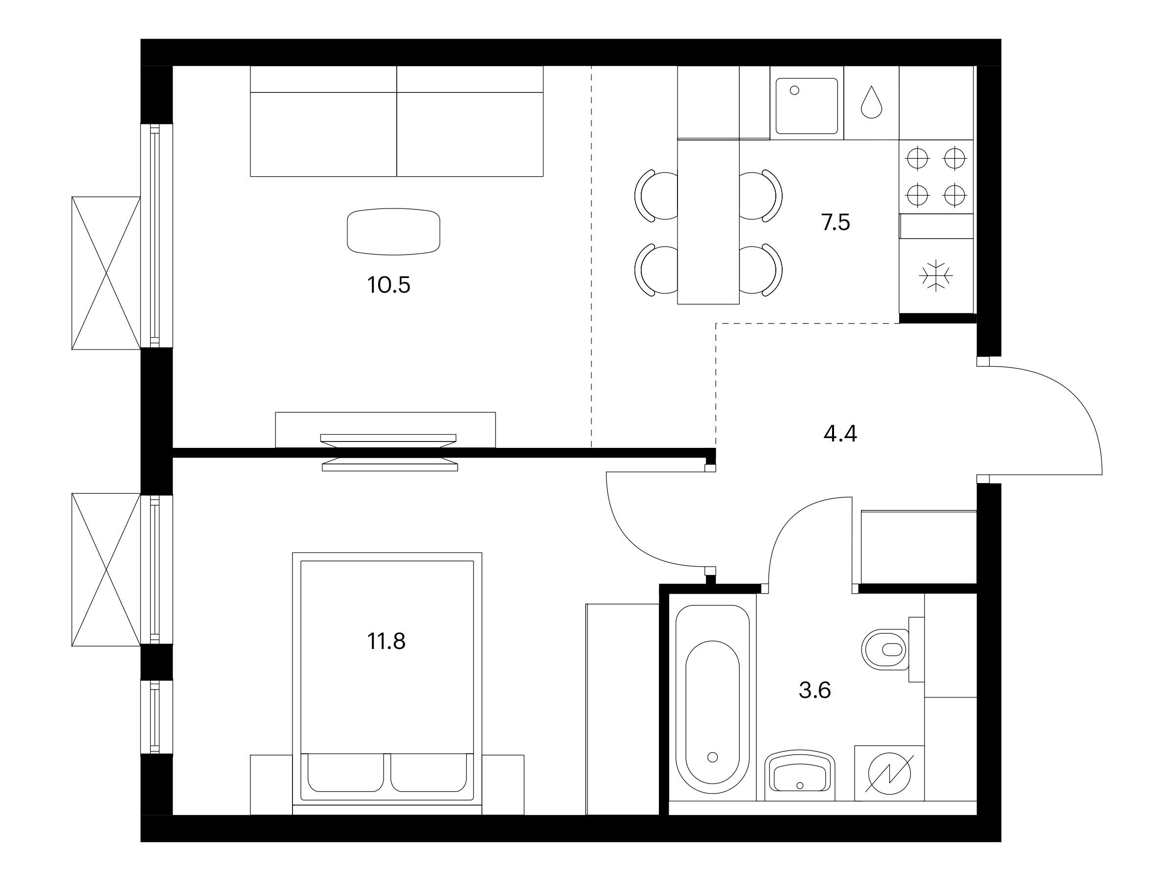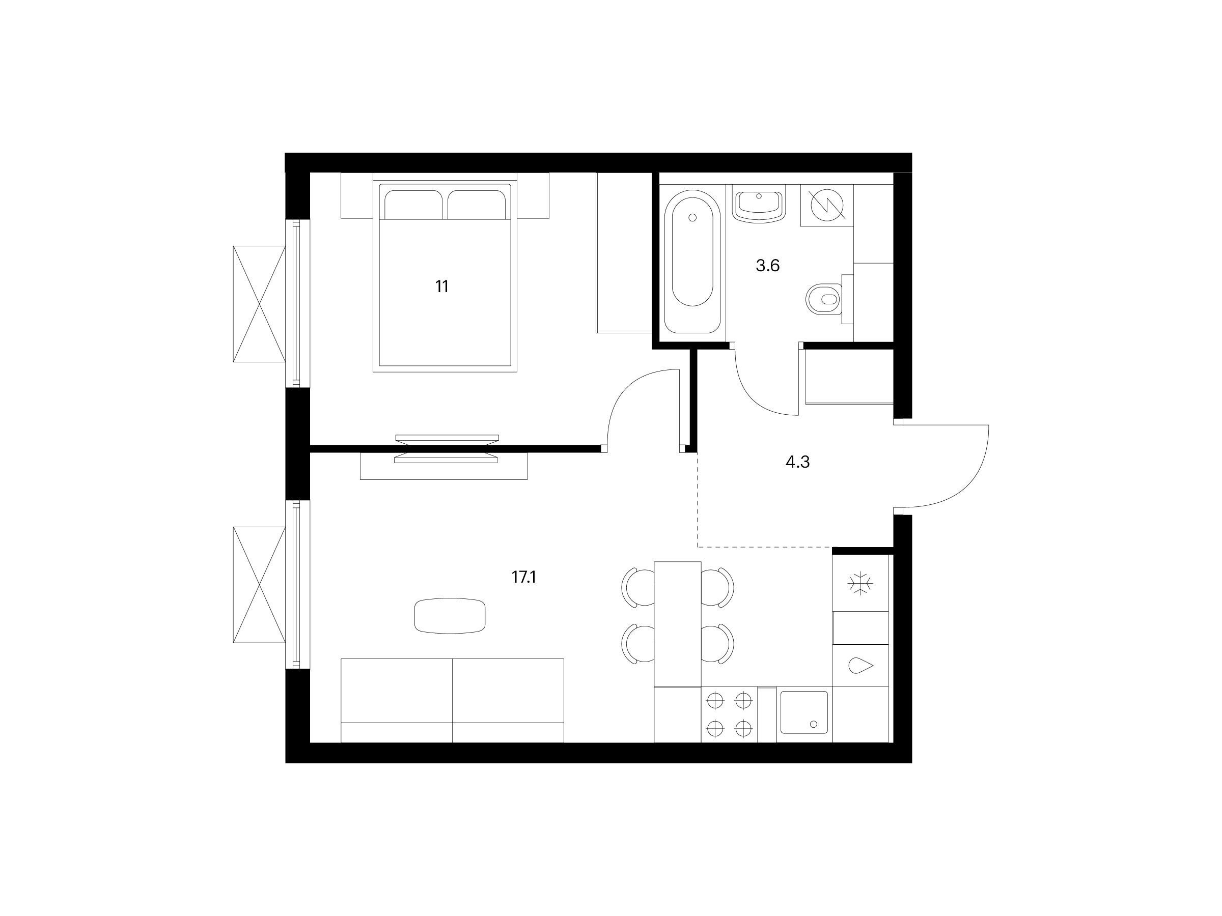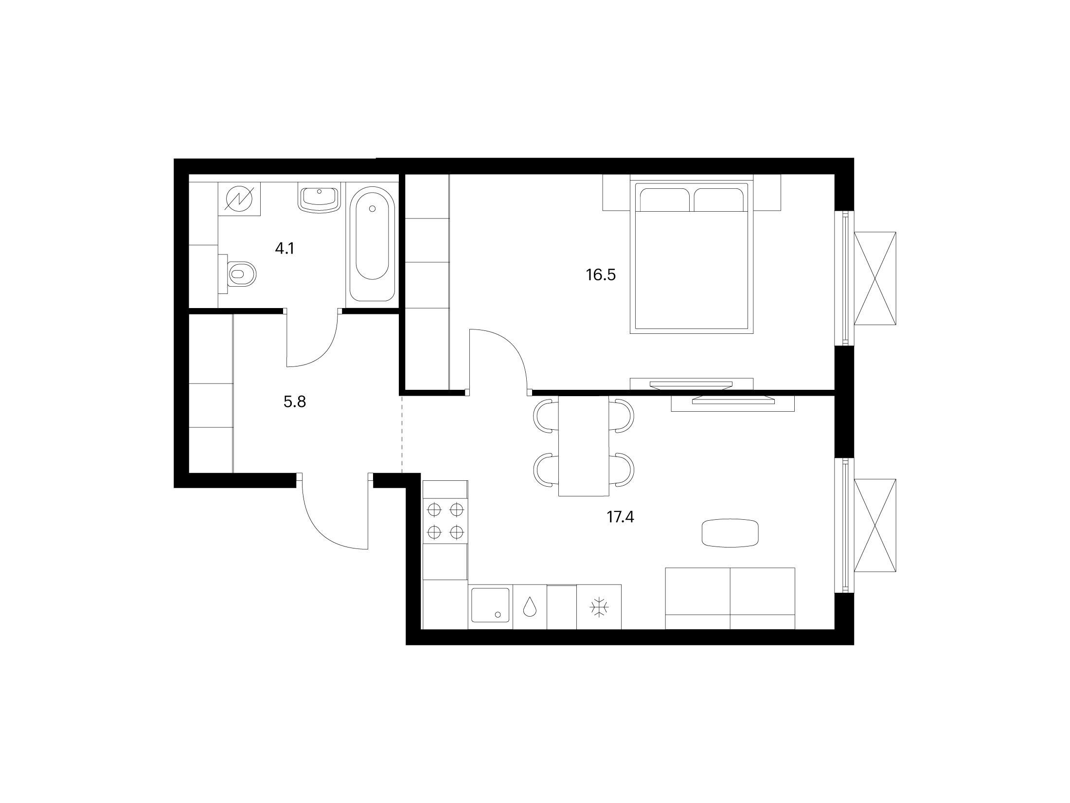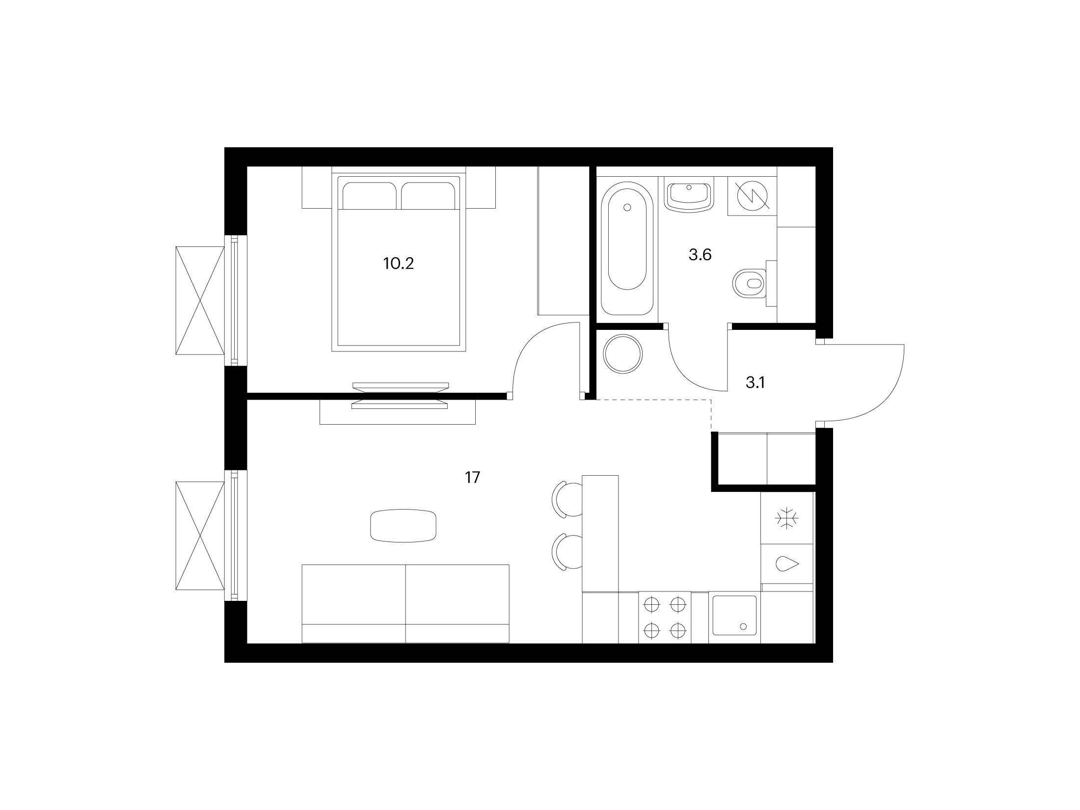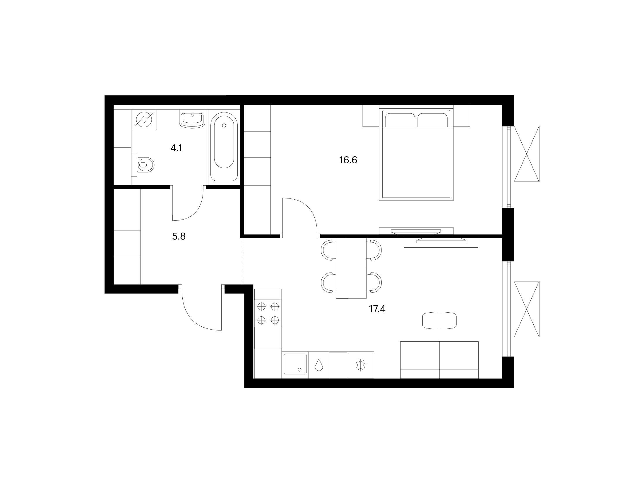 1-комнатная, 33.80 м²