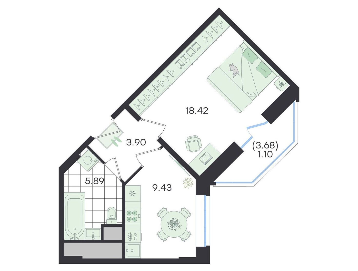 1-комнатная, 39.01 м²