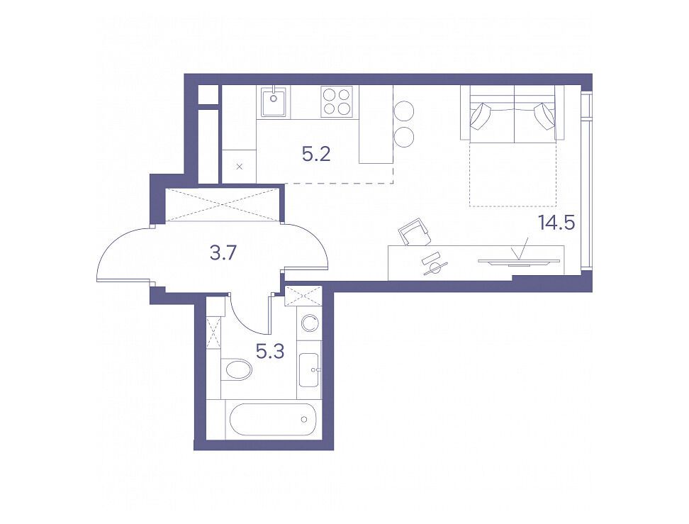Студия, 28.40 м², 8 из 44 эт.