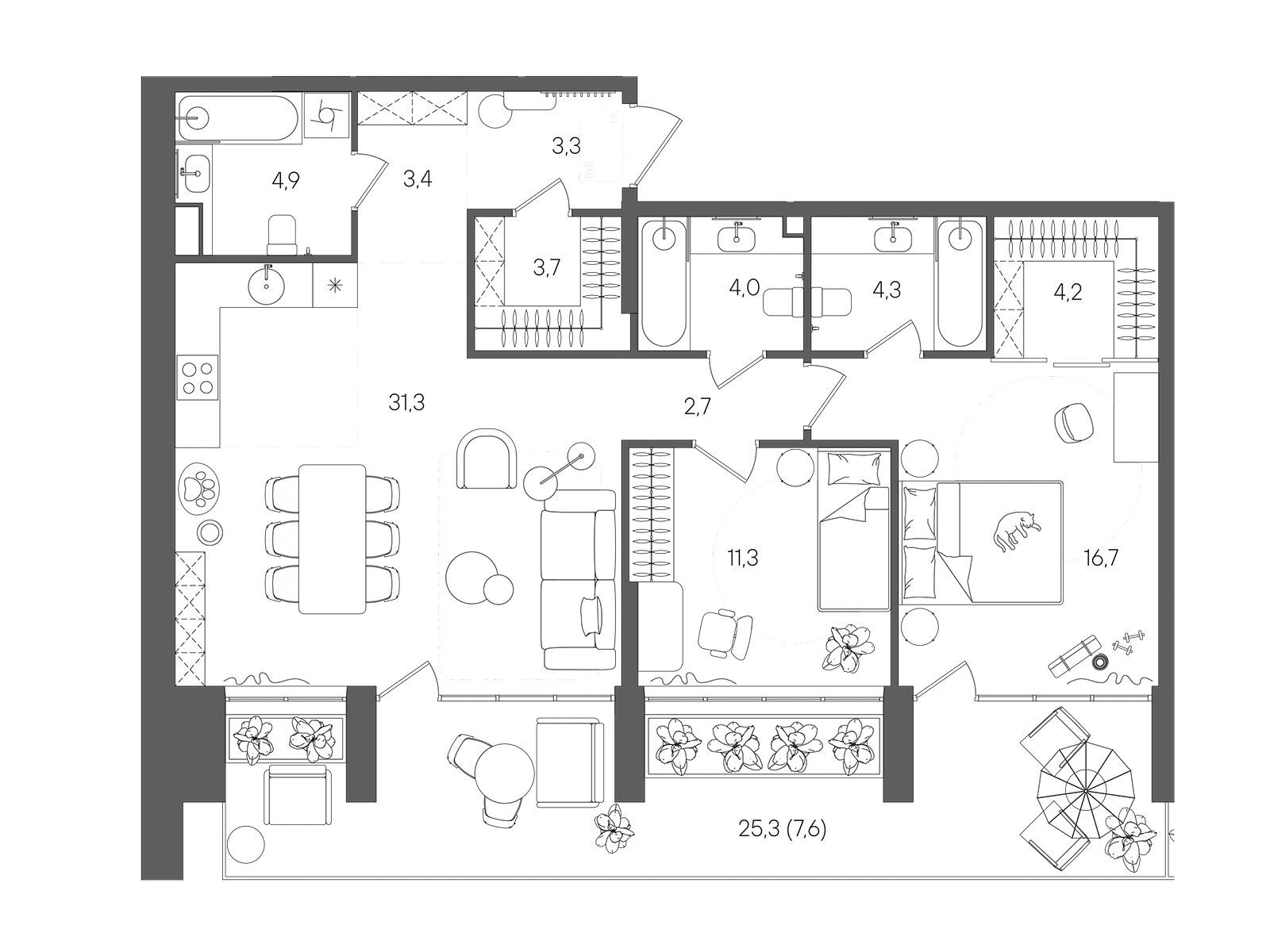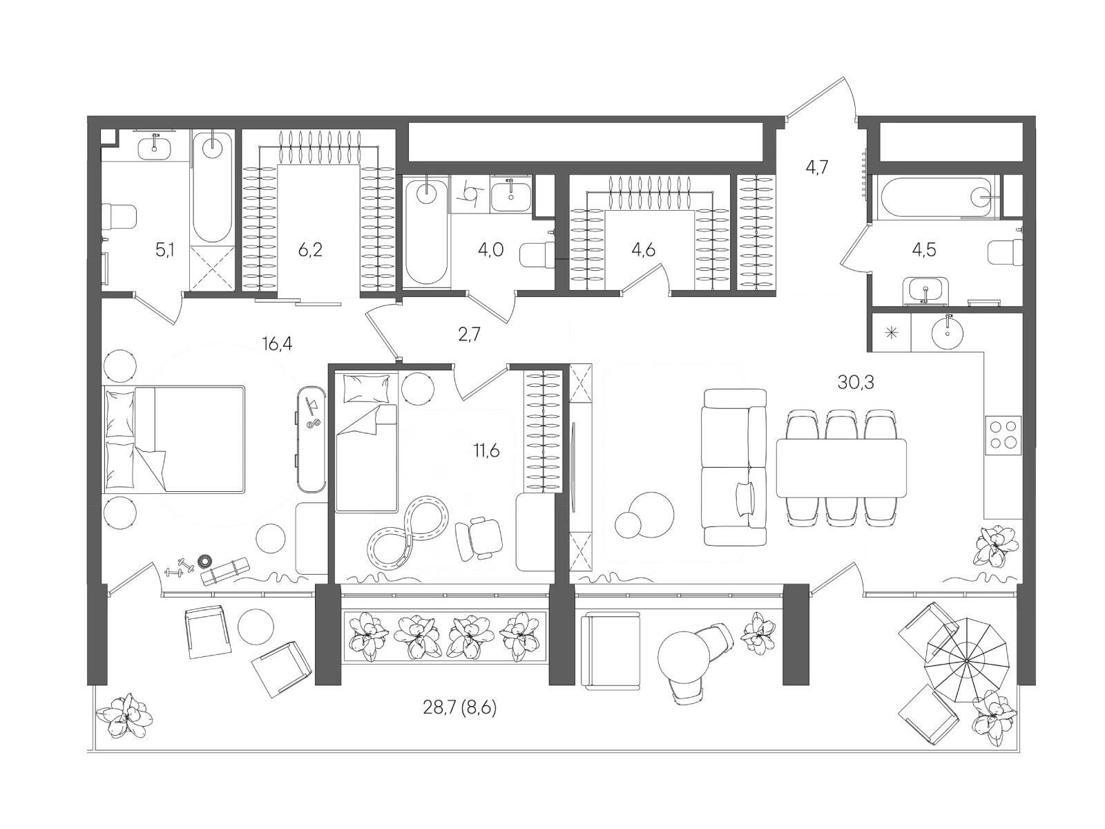 2-комнатная, 88.40 м²