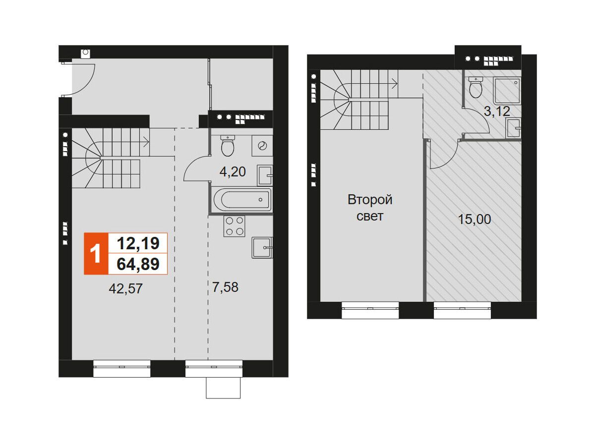 1-комн. квартира, 64.89 м²