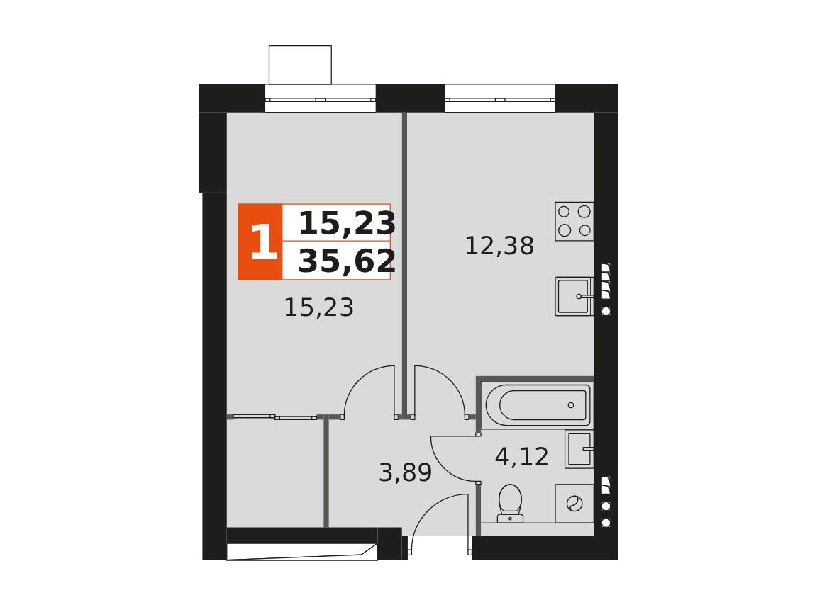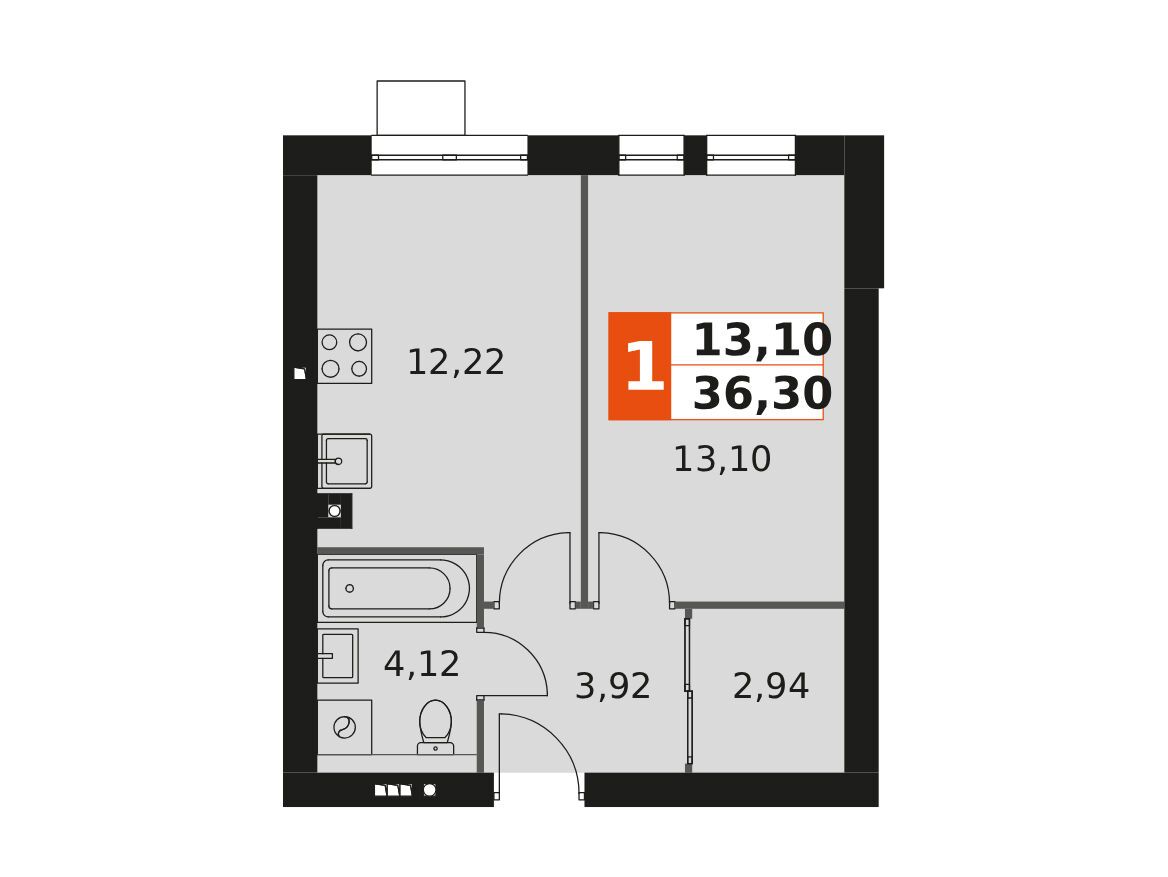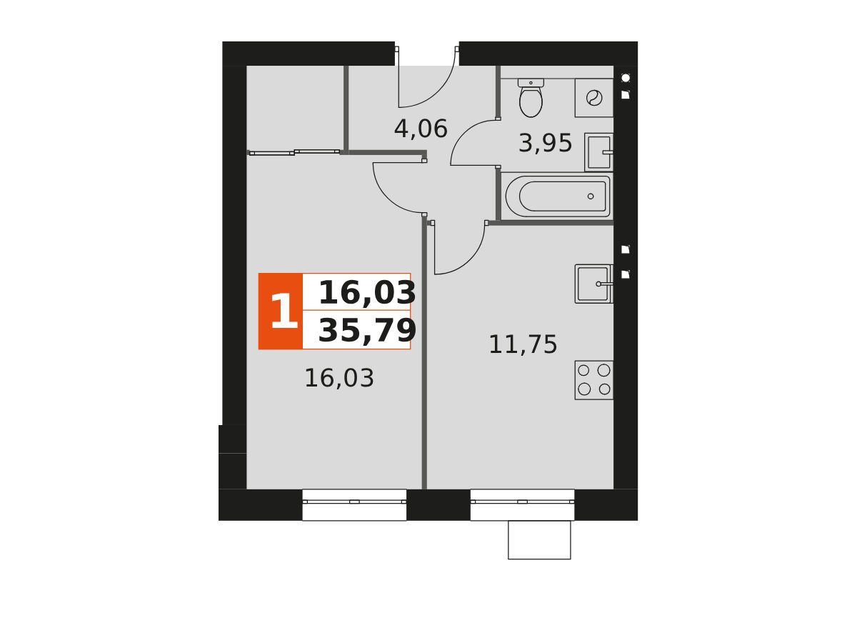 1-комнатная, 58.14 м²