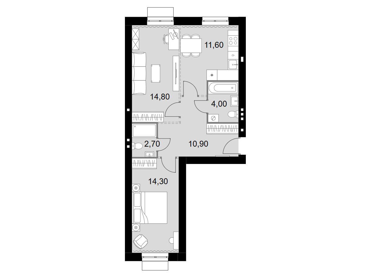 2-комнатная, 63.50 м²