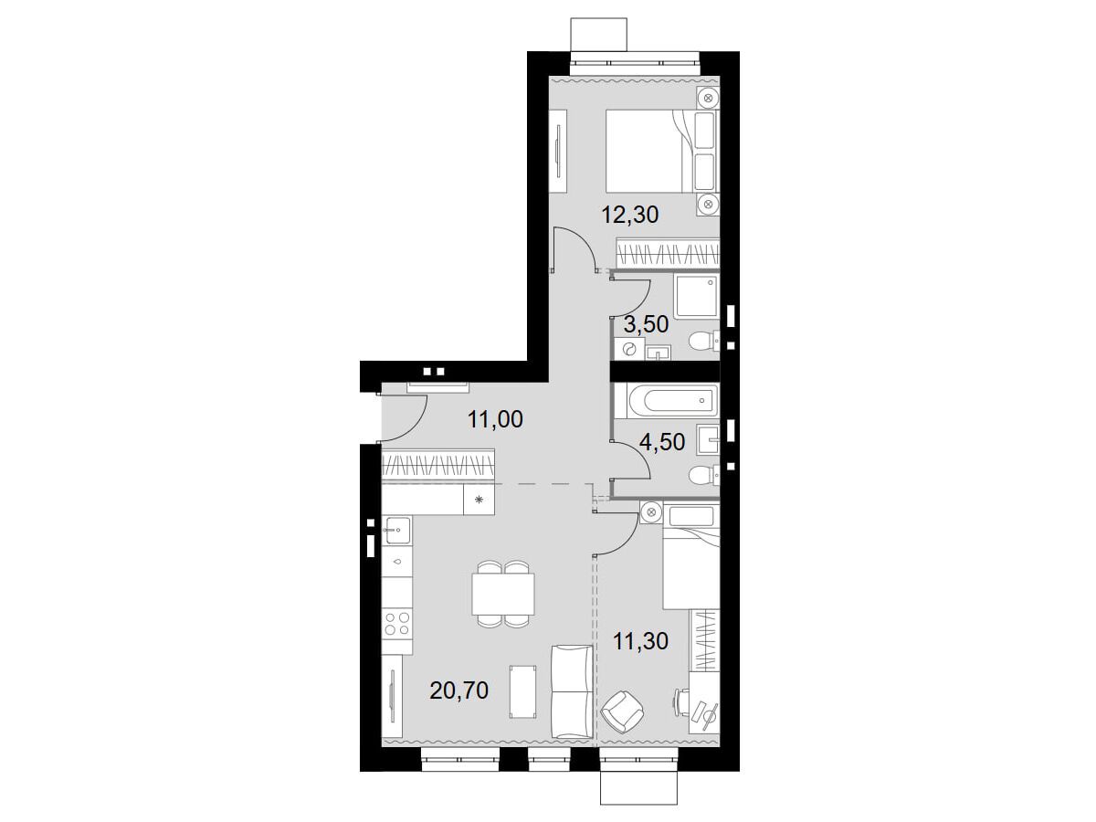 3-комнатная, 97.70 м²